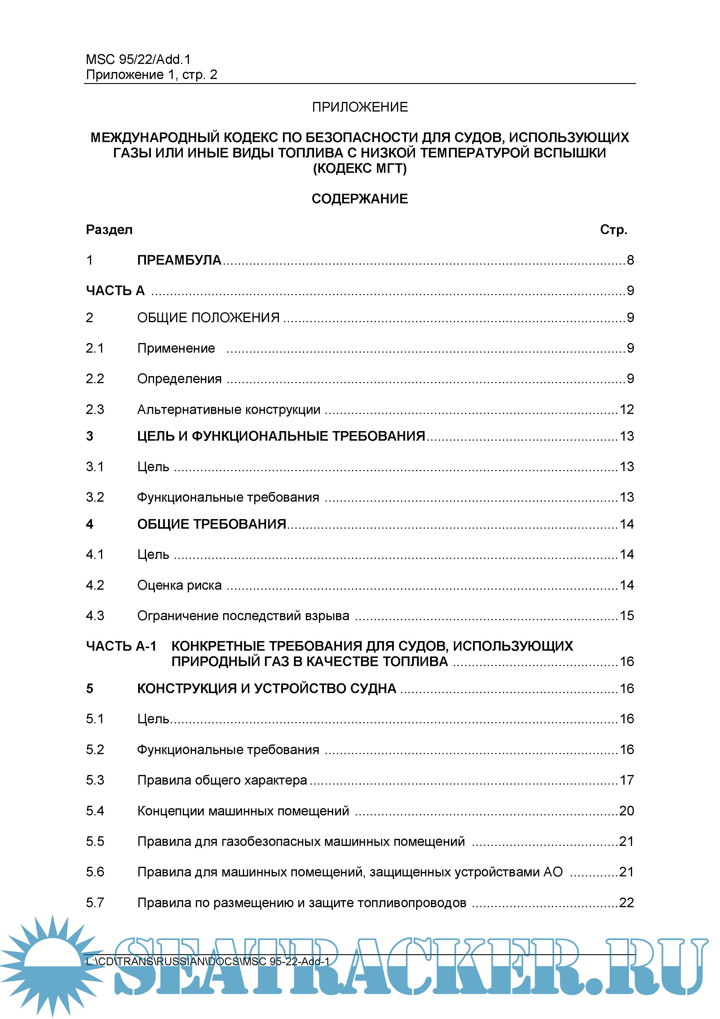 Принципиальной задачей настоящего Кодекса является предоставление положений обязательного характера применительно к устройству, установке, управлению и контролю за работой механизмов, оборудования и систем, использующих топливо с низкой температурой вспышки, с целью сведения к минимуму риска для судна, его экипажа и окружающей среды, а также с учетом специфики используемых видов топлива.