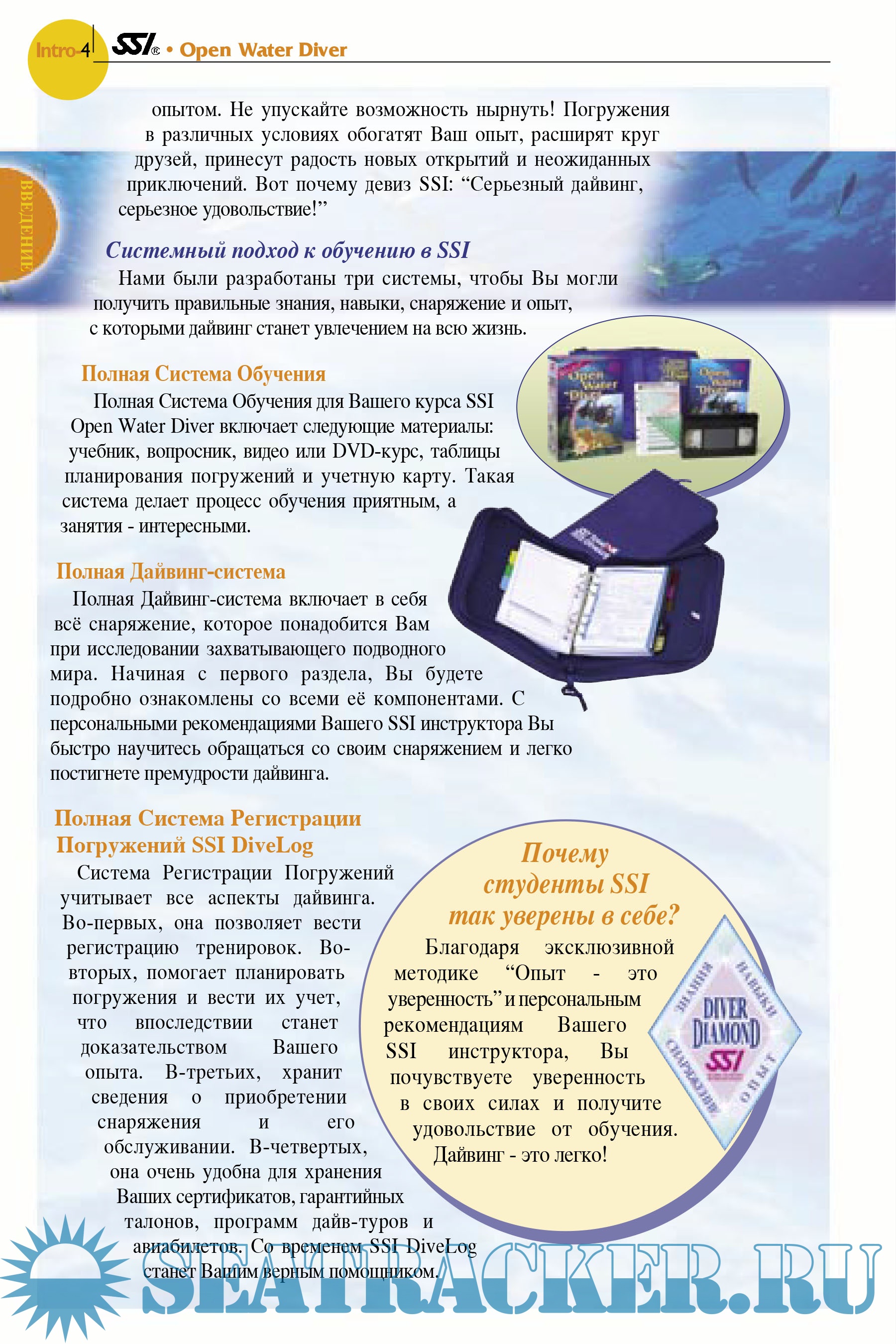Описание: Учебные материалы SSI предназначены для желающих пройти курс обучения подводному плаванию. Они содержат рекомендации и предложения по использованию стандартного и специализированного снаряжения. Не все снаряжение, о котором пойдёт речь в этом учебнике, будет использоваться при обучении.Выбор снаряжения и методик обусловлен местностью, где производится погружение, условиями окружающей среды и другими факторами. Этот выбор можно сделать исключительно после осмотра места погружения. Принятие решения входит в компетенцию инструктора и самого обучающегося.Учебные материалы SSI предлагают обучающимся широкий спектр полезной информации, знание которой необходимо для принятия правильного решения относительно снаряжения и учебных методик. Окончательное решение о том, где и как нырять, принимается каждым дайвером самостоятельно.