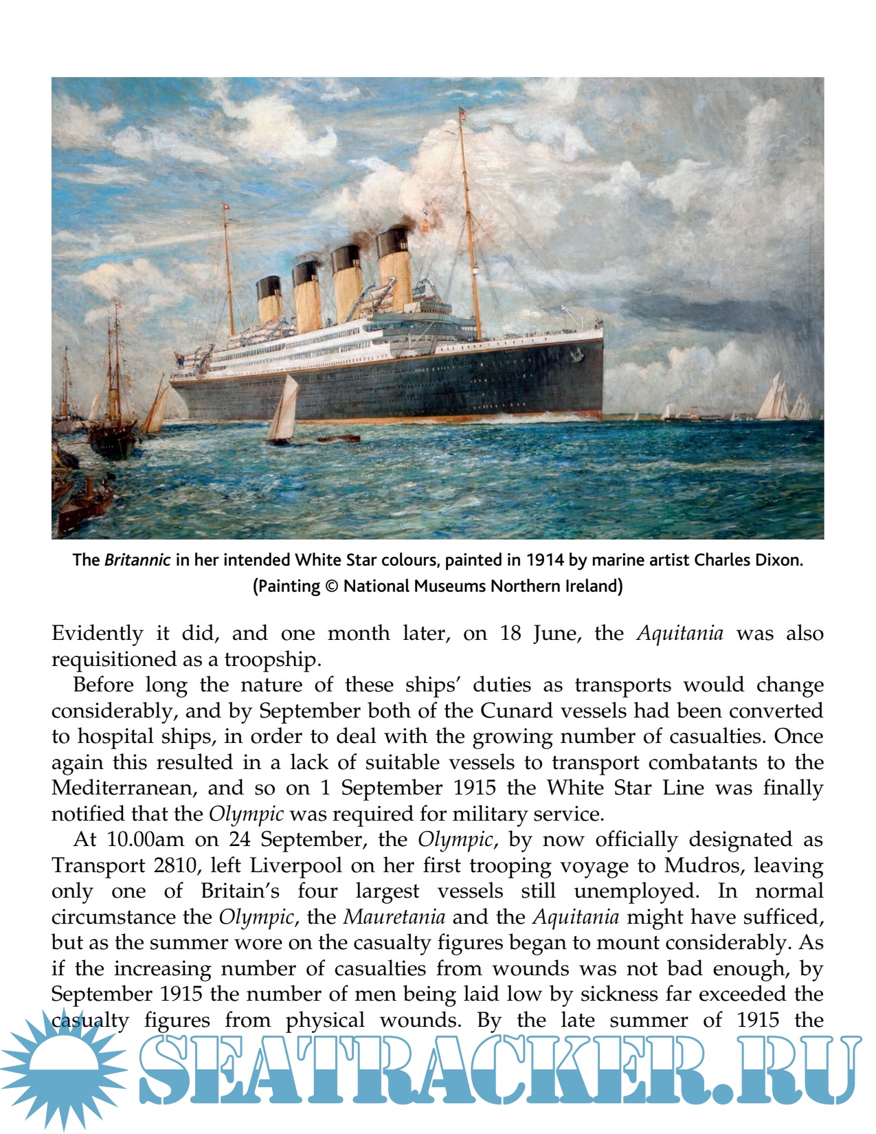 Launched in 1914, two years after the ill-fated voyage of her sister ship, RMS Titanic, the Britannic was intended to be superior to her tragic twin in every way. But war intervened and in 1915 she was requisitioned as a hospital ship. Just one year later, while on her way to collect troops wounded in the Balkans campaign, she fell victim to a mine laid by a German U-boat and tragically sank in the middle of the Aegean Sea.