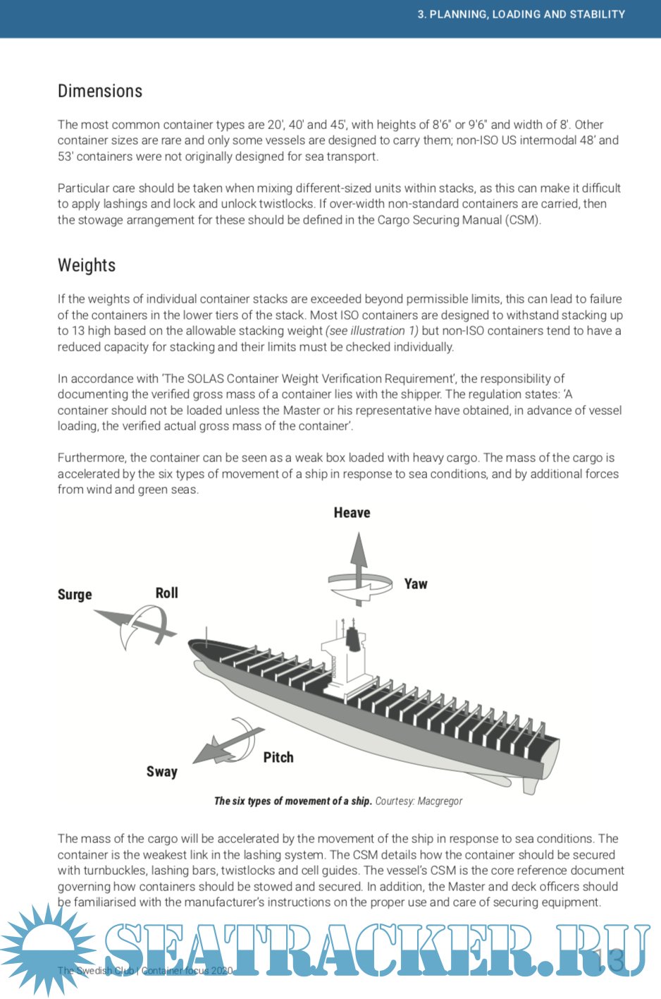 Year: 2020 Language: english Author: The Swedish Club Genre: Guide Publisher: The Swedish Club Format: PDF Quality: eBook Pages count: 32 Description: Established less than 70 years ago, the container industry is perceived by many as the modern face of shipping. Yet despite the sector being well regulated and highly regarded, containers are still lost overboard. In this publication we investigate this issue – we share statistics that the Club has carefully compiled over a number of years, provide an insight into specific cases, and with the help of experts, deliver some hands-on advice. The most common factors associated with loss of containers overboard are misdeclared cargo weight, containers not stowed in accordance with the Cargo Securing Manual (CSM) and sailing through heavy weather. Unfortunately, many of the issues raised in this publication occur time and time again in claims handled by The Swedish Club.