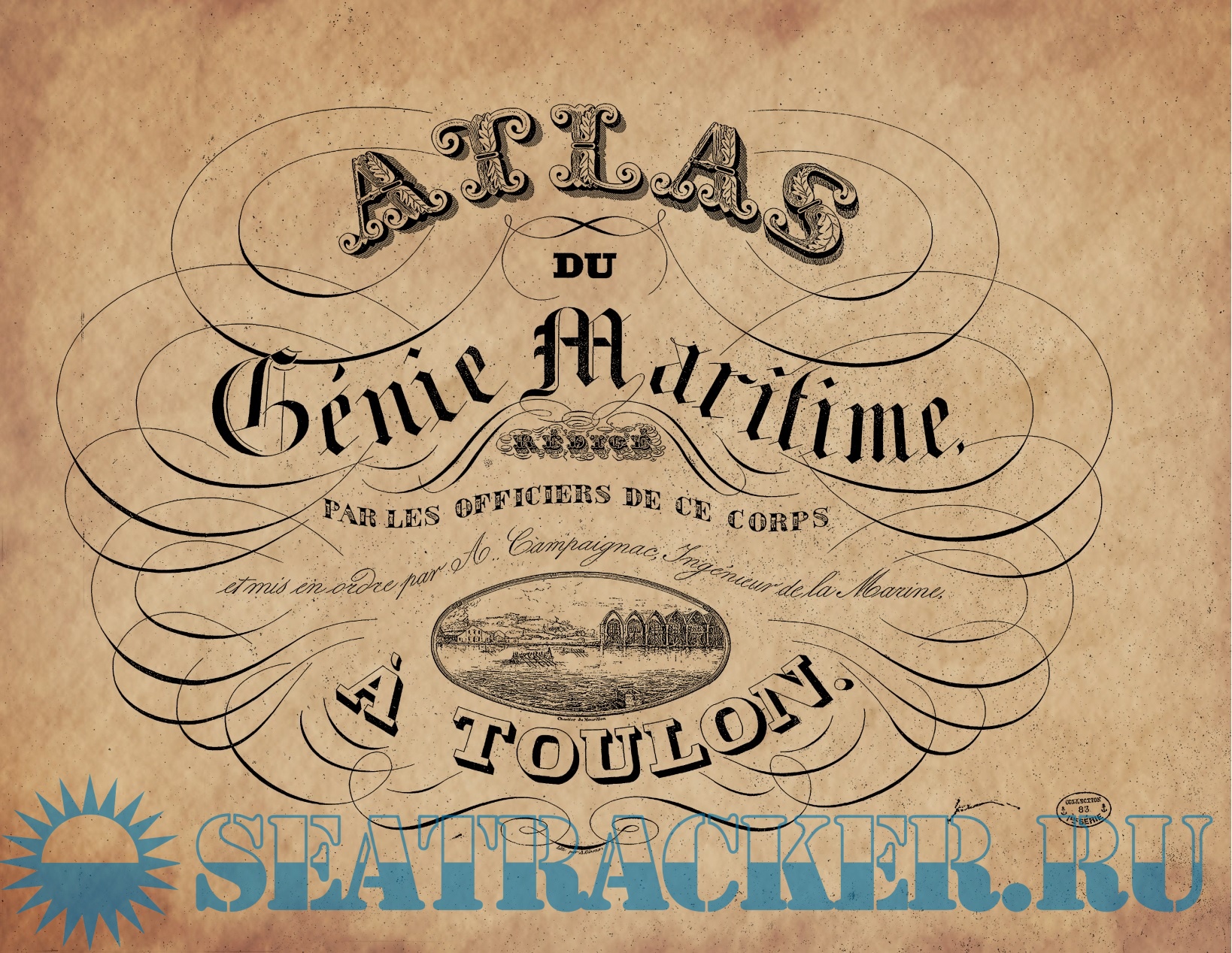 Корабельный Атлас с подробными черно-белыми схемами и чертежами парусных судов. Atlas du Génie Maritime содержит несколько сотен планов кораблей, обводов корпуса, планов парусов, такелажа и оборудования судов XIX века.