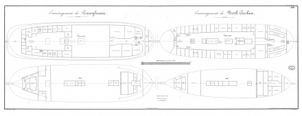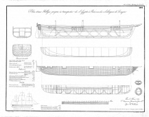 Description: The Atlas du Génie Maritime has several hundred plans of ships, hull lines, sail plans, rigging and equipment of 19th century vessels. It was published in France in several volumes and has been put online by the French government, by the Service Historique de la Défense, some years ago.