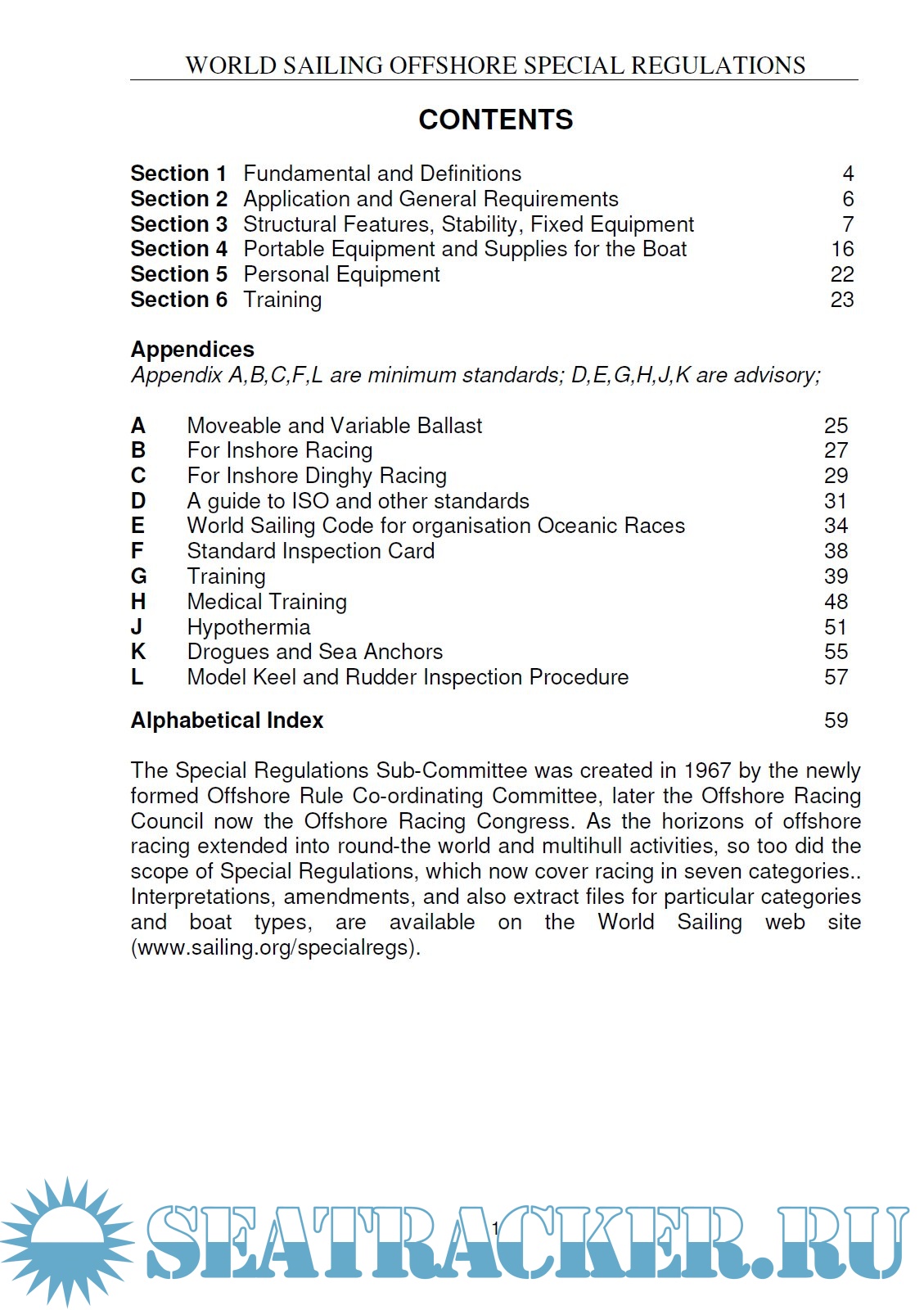 Description: As the horizons of offshore racing extended into round-the world and multihull activities, so too did the scope of Special Regulations, which now cover racing in seven categories. Offshore Special Regulations for 2020-2021 are divided into section covering definitions, general requirements, structures, stability, fixed and portable equipments, environment care and training. Appendices deal with minimum standards and advisory requirements.