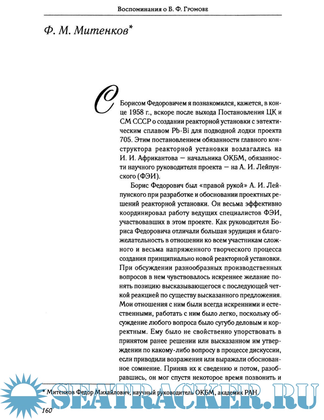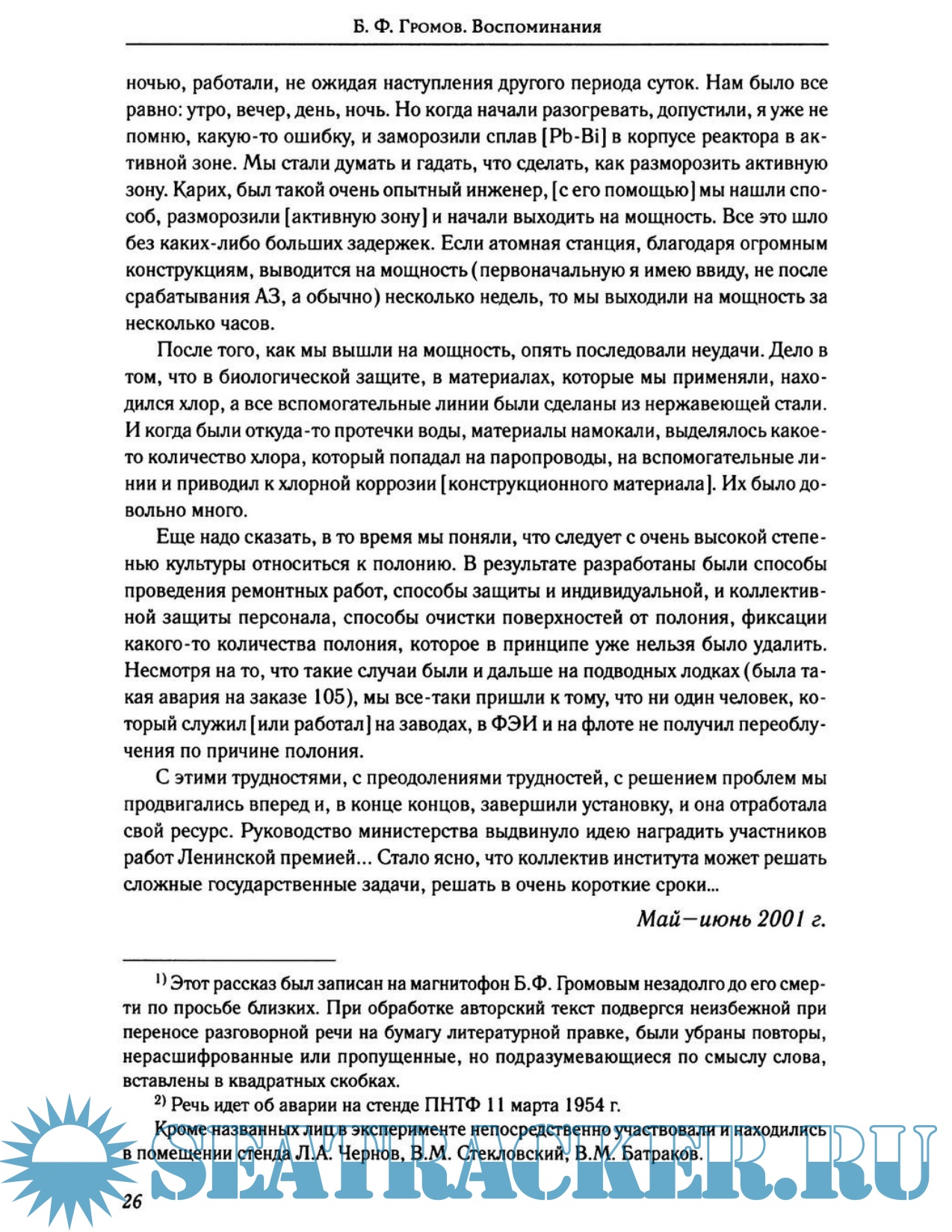 Описание: Книга посвящена 80-летию со дня рождения Громова Бориса Фёдоровича - заместителя директора Физико-энергетического института (1972—2000), лауреата Ленинской премии (1961), лауреата Государственной премии СССР, заслуженного деятеля науки и техники РСФСР. Громов впервые в мире обосновал атомную энергетическую установку с жидкометаллическим теплоносителем (ЖМТ), ставшей прообразом последующих реакторов для атомных подводных лодок. В Северодвинске был построена АПЛ проекта 645 с двумя реакторами, охлаждаемыми жидкометаллическим теплоносителем. Лейпунский и Громов курировали все этапы её строительства и монтажа. В 1968 году после нескольких успешных автономных походов в подлёдные северные воды, экваториальные воды и Средиземное море произошла авария на реакторе правого борта, в результате которой погибло несколько человек. Громов взял ответственность за эту аварию на себя и выступил координатором работ по улучшению реактора.