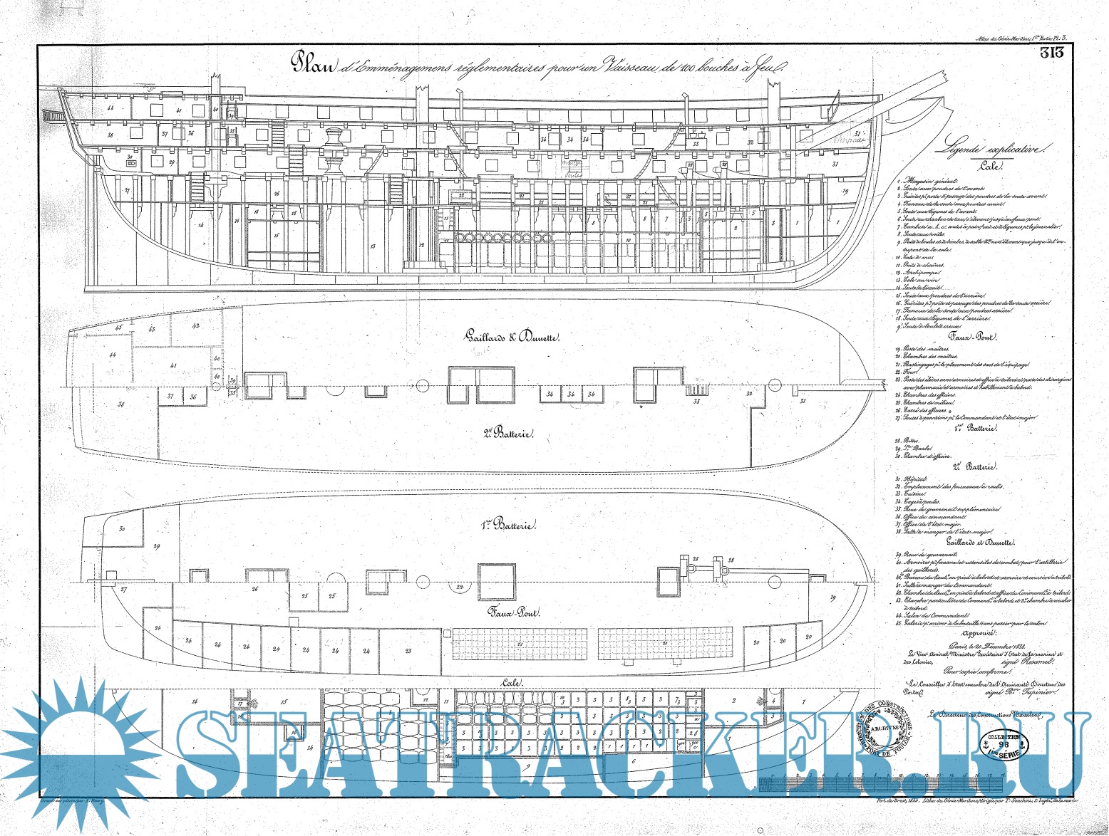 Plans reglementaries in coque des batimens de guerre & atlas de genie maritime a Toulon,