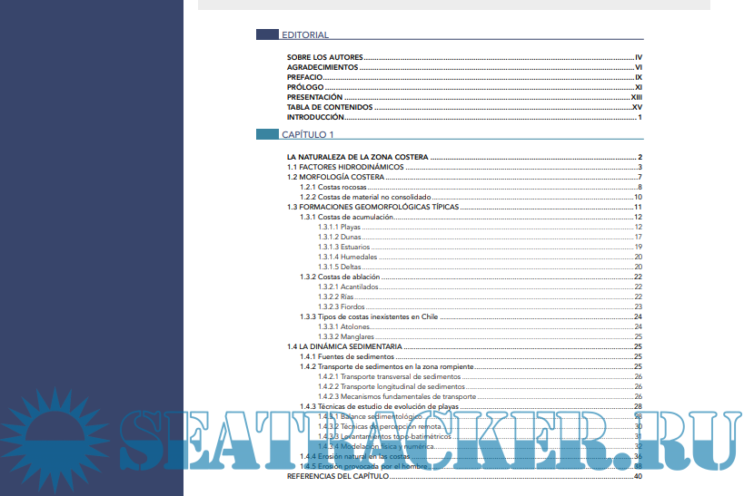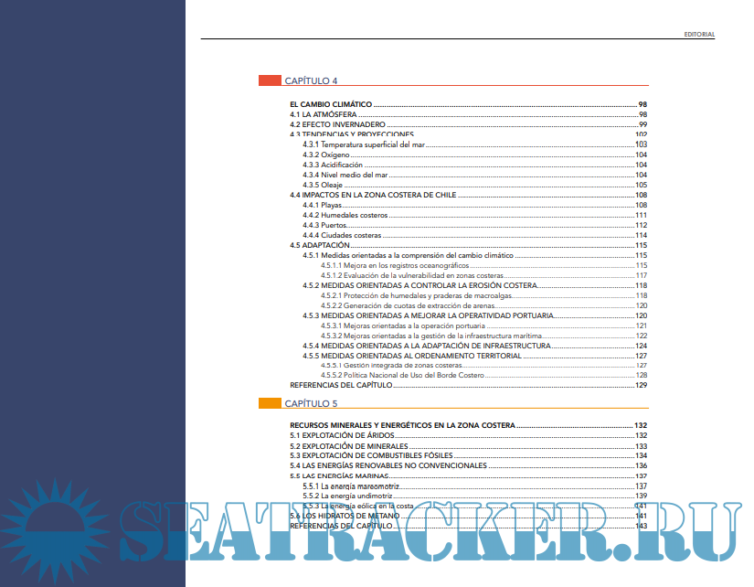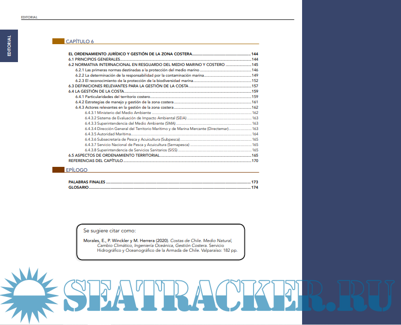 «Costas de Chile» constituye un esfuerzo conjunto de la Escuela de Ingeniería Civil Oceánica de la Universidad de Valparaíso, el Comité Oceanográfico Nacional y el Servicio Hidrográfico y Oceanográfico de la Armada de Chile, para dar a conocer fundadamente la importancia que la zona costera tiene en el desarrollo nacional. Mediante este texto buscamos poner a disposición de estudiantes, científicos y profesionales de distintos campos disciplinarios, un panorama de las cuestiones que surgen como consecuencia de la intensificación del uso de la zona costera. El texto cubre materias tan disímiles como los procesos que definen la naturaleza de la zona costera, la infraestructura costera y portuaria, los impactos del cambio climático en algunos de sus sistemas, los recursos minerales y energéticos que se encuentran en el océano inmediato, y aspectos sobre el ordenamiento jurídico y la gestión de la zona costera. Esta lista de contenidos, naturalmente, no cubre todos los aspectos que caracterizan a la zona costera, y tiene un claro sesgo de parte de los autores, quienes venimos de los mundos de la ingeniería, la geografía, la biología marina y el derecho. Es, en suma, un libro de divulgación científica con contenidos introductorios a temas que pueden ser explorados por el lector en otros textos especializados. Hemos procurado escribir un texto en lenguaje simple y con abundante material gráfico, con el ánimo de apuntar a un público amplio. El libro fue pensado en versión digital y gratuita, pues estamos convencidos de que este material tiene un valor público que no debe tener barreras de acceso. Esperamos que el lector disfrute explorando estas líneas tanto como lo hemos hecho nosotros, junto al equipo editorial, al producirlo.