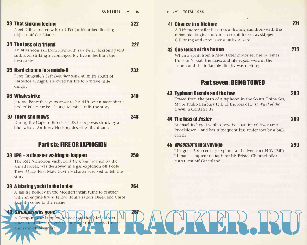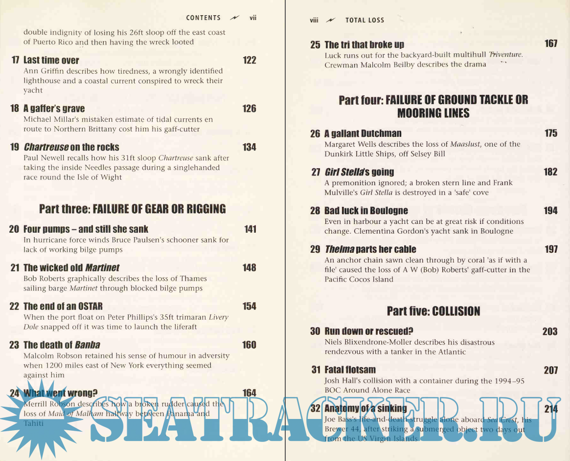 Description: Total Loss is an anthology of selected accounts by some 40 people who have survived the loss of a yacht at sea. The stories are grouped under the principle causes of loss and each is followed by an analysis of the lessons to be learned.