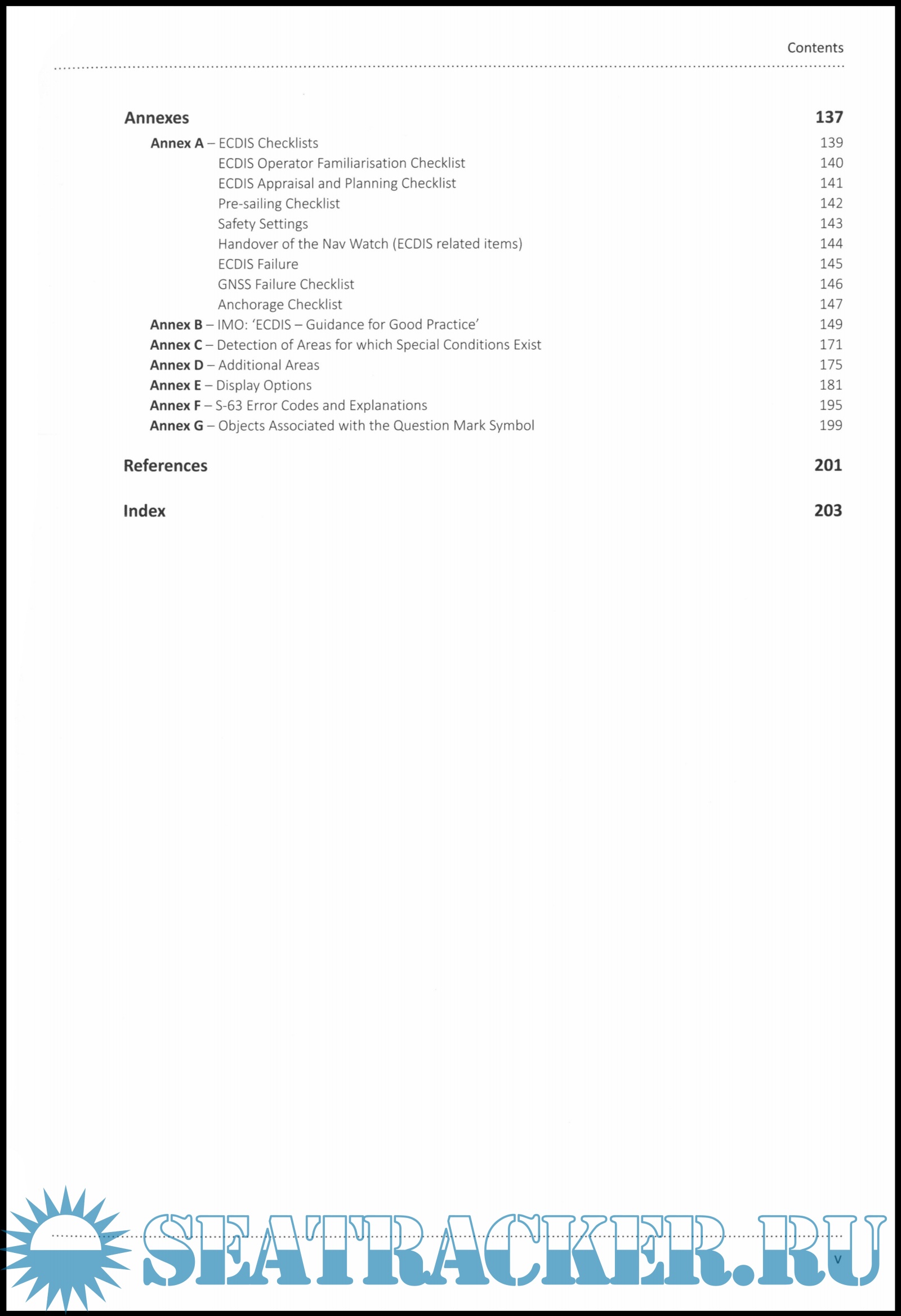 The Appendices include a series of ECDIS checklists, the IMO Guidance for Good Practice, areas for which special conditions exist, an illustrated list of independent mariner selectors, S-63 error codes and explanations and objects associated with the question mark symbol
