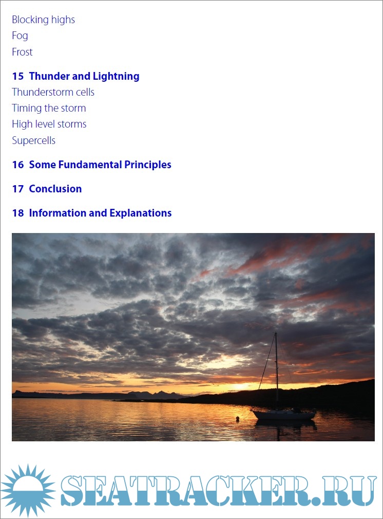Year: 2020 Language: english Author: Alan Watts Genre: Handbook Publisher: Adlard Coles Edition: 4th ISBN: 978-1-4729-7849-3 Format: EPUB Quality: eBook Pages count: n/a Description: The Weather Handbook is the essential guide to how the weather is formed. It provides readers with the ability to recognize and interpret visible signs in the sky, and combine this knowledge with information provided by professional weather forecasters. This handbook has been the standard reference for over 20 years for RYA students on Day Skipper and Yachtmaster courses, and the handbook of choice for skippers and crew of cruising and racing yachts. The fourth edition has been updated and expanded with new photos and explanatory text, addressing new sources of weather information. There are many useful websites and apps providing forecast data, and The Weather Handbook guides users in how to use and interpret this information for themselves, taking a general forecast for a wide area to provide a local forecast for a specific location.