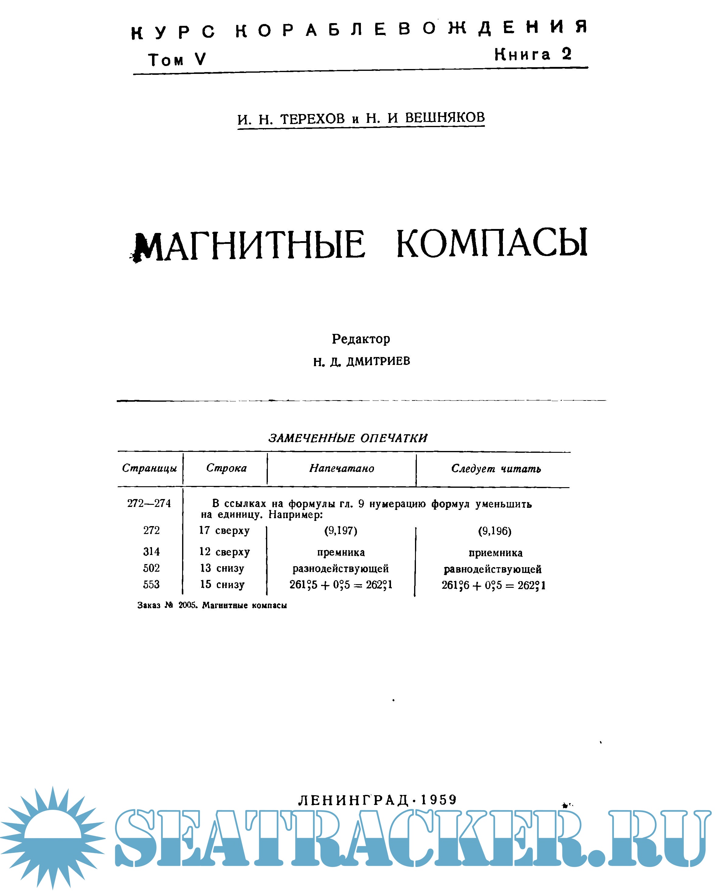 Книга не содержит описаний и правил эксплуатации конкретных марок компасов и не заменяет соответствующих правил, инструкций и наставлений, издаваемых отдельно для различных классов кораблей и различных марок приборов.