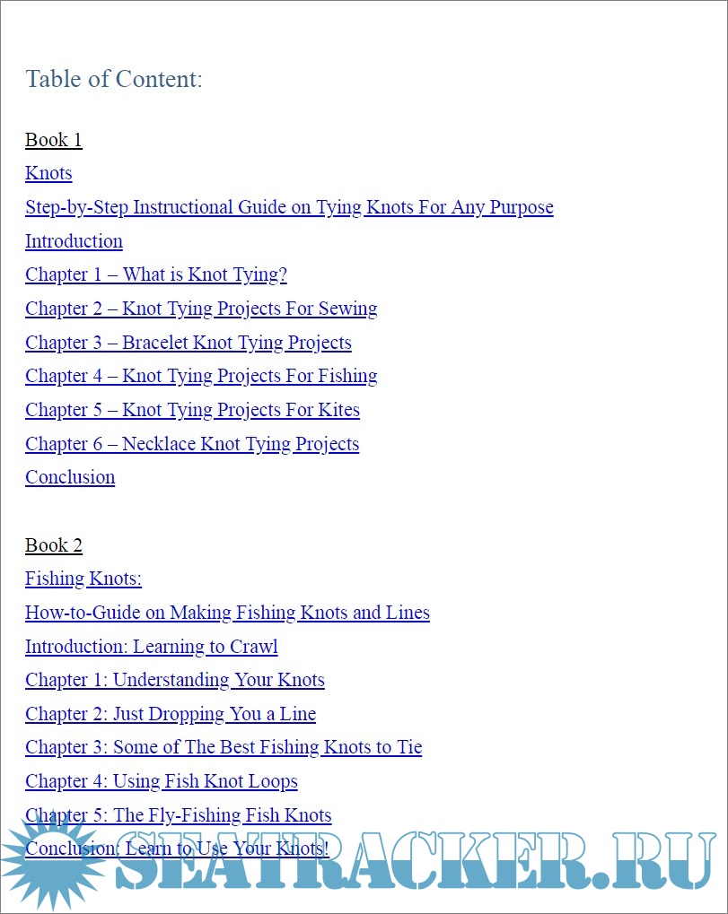 Description: This handbook is the result of the union of two book, dedicated to knots "projects" in general, be they marine, ornamental, recreative or fishing. It is a step-by-step Instructional Guide aimed to be friendly for beginners and entertaing. The reader can learn how to tie knots for various purposes through the help of numerous photos and simple explanations.