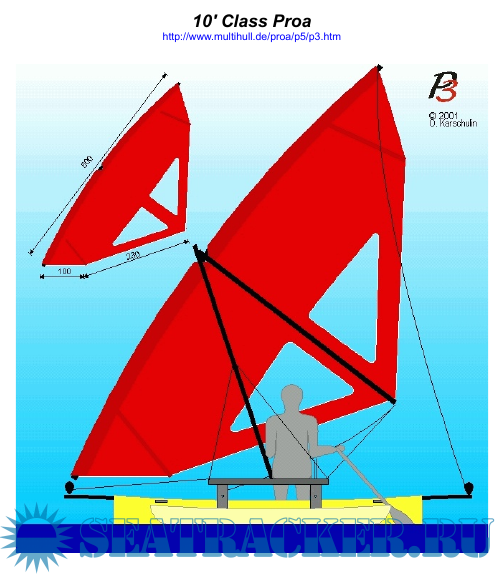 Этот проект разработан немецким конструктором для участия в регате самодельных лодок с длиной корпуса не выше 10 футов (3,04 м).