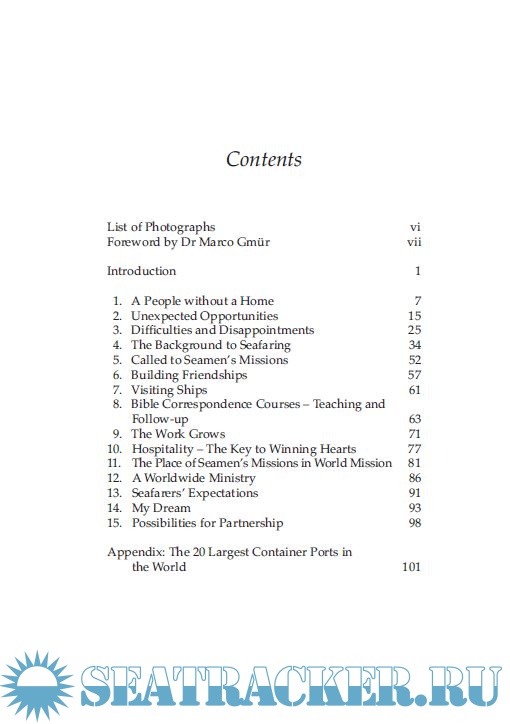 Description: Be inspired and catch God's vision for the seafarers of the world! The author Martin Otto is an eye-witness of how God is building his church amongst these easily forgotten, marginalised and often lonely economic nomads of the high seas. Through Christian friendship and hospitality, as well as letters and correspondence Bible studies, lives are being changed and many have been saved!