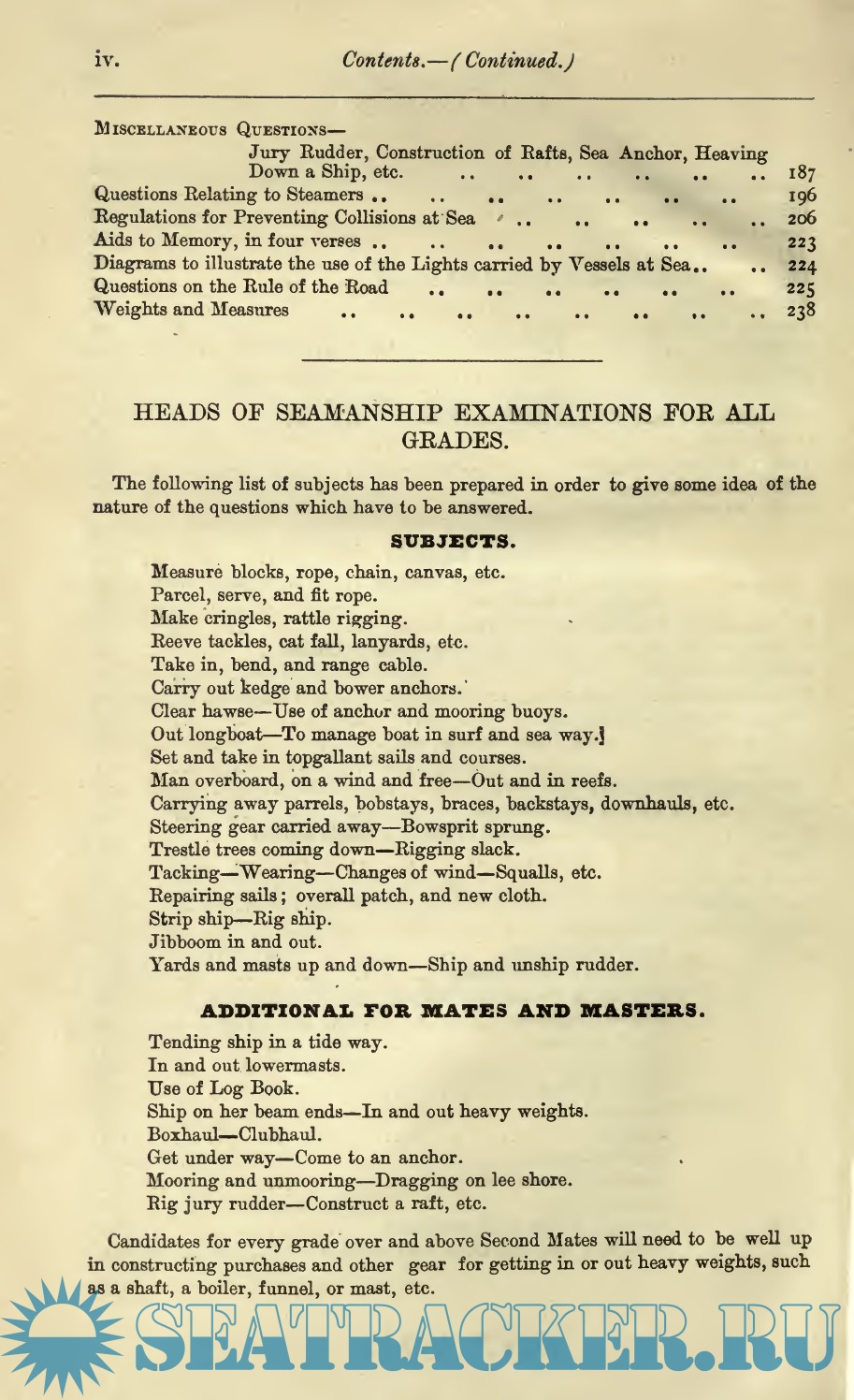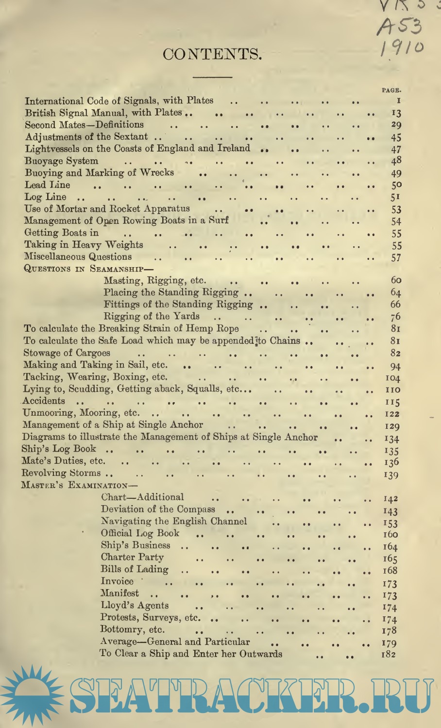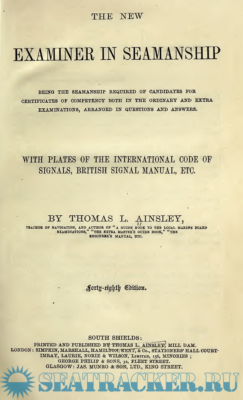 Description: This manual is a revised and enlarged edition of a famous text book for Candidates preparing for the Board of Trade Examinations, UK. Seamanship Notes, subjects required for Certificates of Competency both in the ordinary and extra examinations, are arranged in Form of Questions and Answers. Many additions have been made, including full explanations and illustrations of the " British Signal Manual," a thorough knowledge of this Code being necessary to pass the examination. The " International Code of Signals" has received special attention, and numerous illustrated examples added, plus a chapter on miscellaneous questions. The book is in form of "questions and answers" ready to be studied by the examinee.