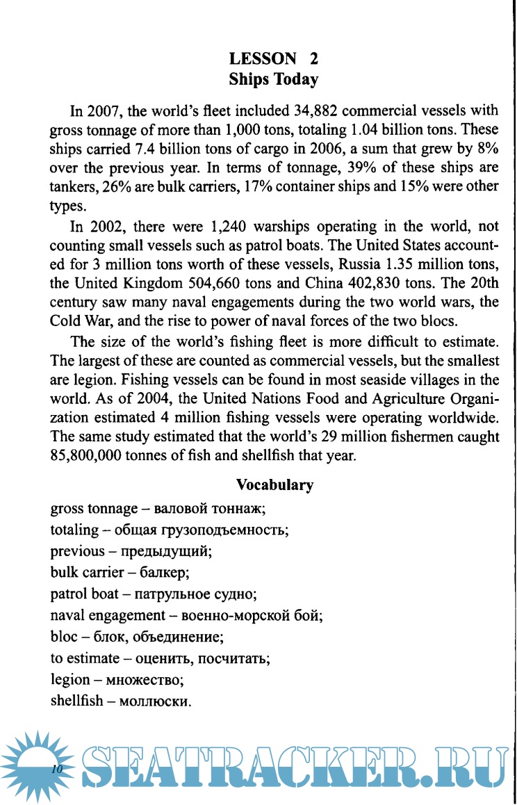 Описание: Учебно-методическое пособие сосредоточено на отработке основных лексических тем английского языка в морской профессии. Пособие содержит 2 раздела и приложения, включающие систему текстов, диалогов и документов.