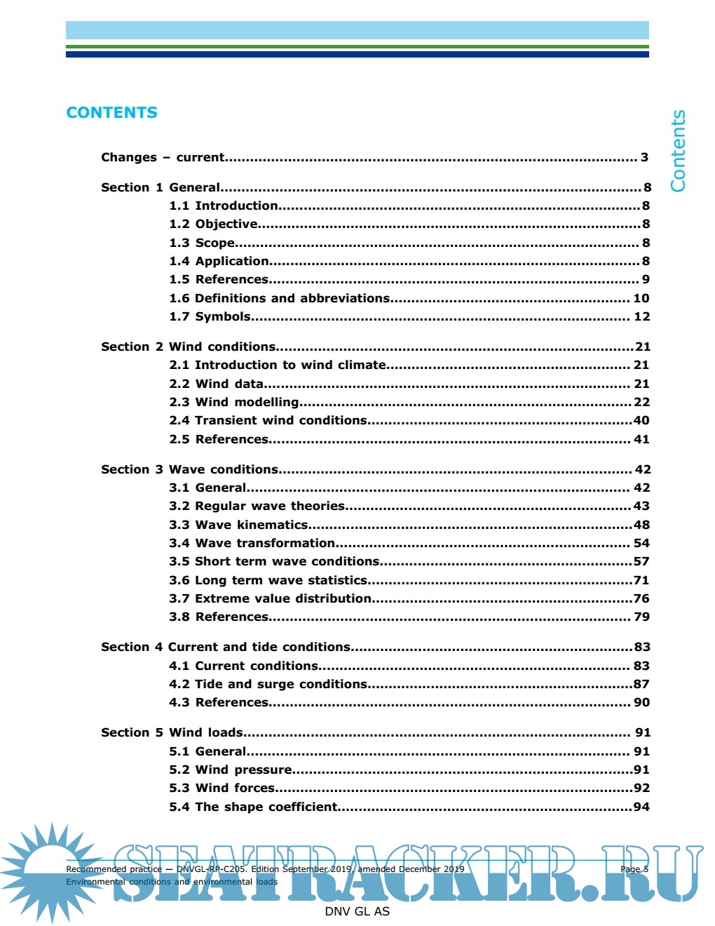 conditions, and guidance for calculating environmental loads acting on marine structures. The most important