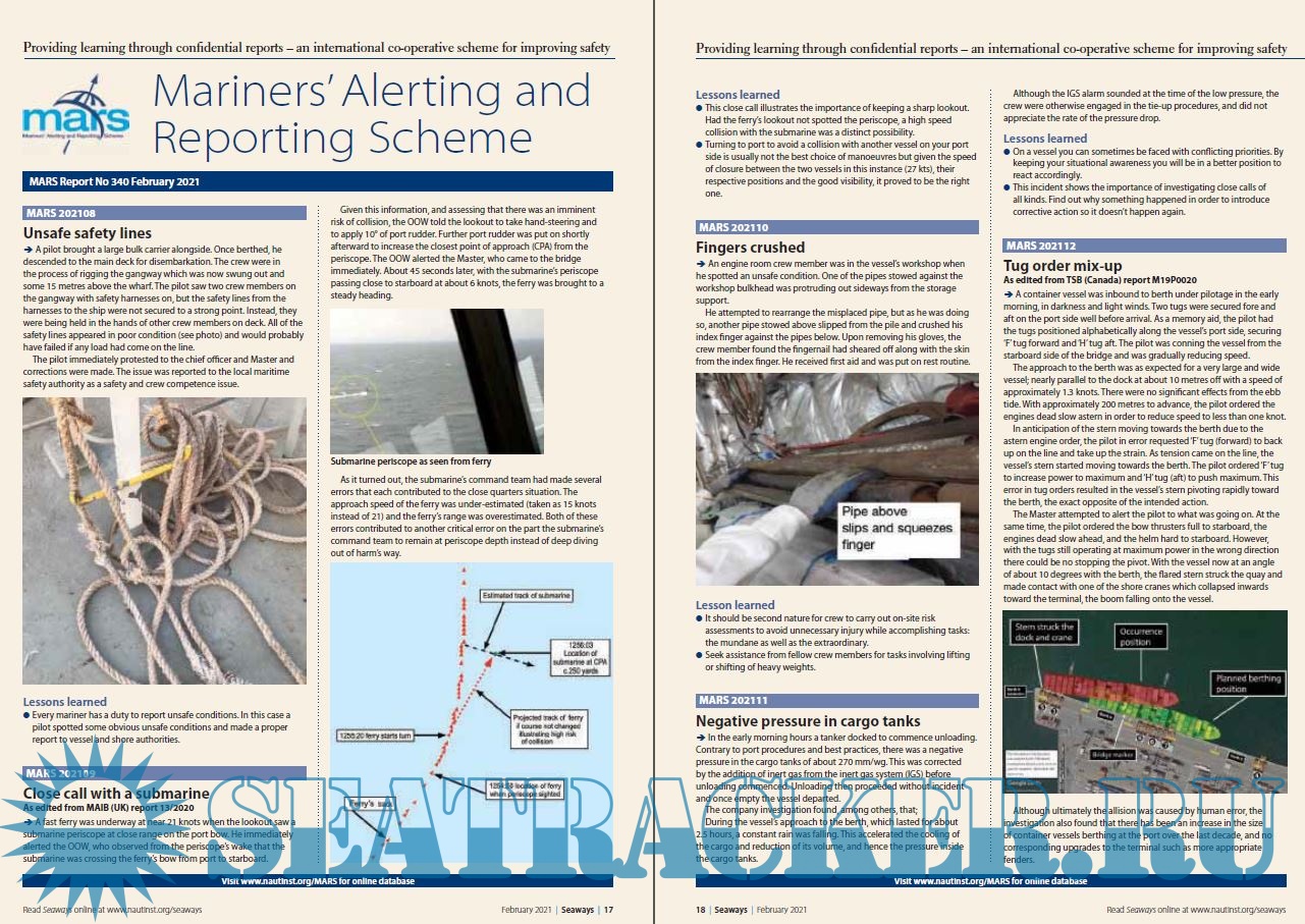 Description: Recognised as one of the leading maritime journals, Seaways is sent out to all members monthly. It is the international journal of The Nautical Institute and has the most vibrant professional correspondence section to be found anywhere in the industry.