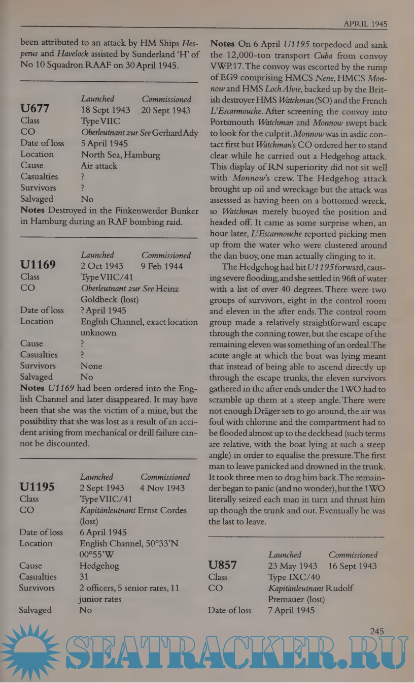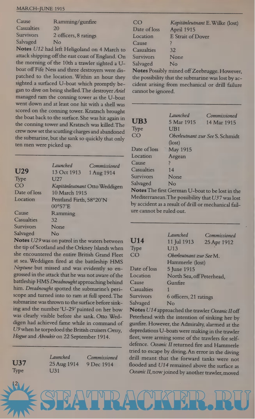 Year: 1999 Language: english Author: Kemp P. Genre: History Publisher: Arms @ Armour Edition: 2nd ISBN: 1-85409-515-3 Format: PDF Quality: Scanned pages Pages count: 292 Description: In both World Wars I and II, the German U-boat was the Allies' scourge, and in the latter conflict it very nearly won the day for the Nazis. Over a thousand of these powerful ships were destroyed in air and seaborne attacks, by surface vessels and submarines, in tough head-to-head encounters, chance meetings, and after extensive chases and hunts. Here is unprecedented detail of these sinkings and obliterations, of casualties on a massive scale, and of a victory hard-won. Additional info: https://seatracker.xyz/viewtopic.php?t=45125