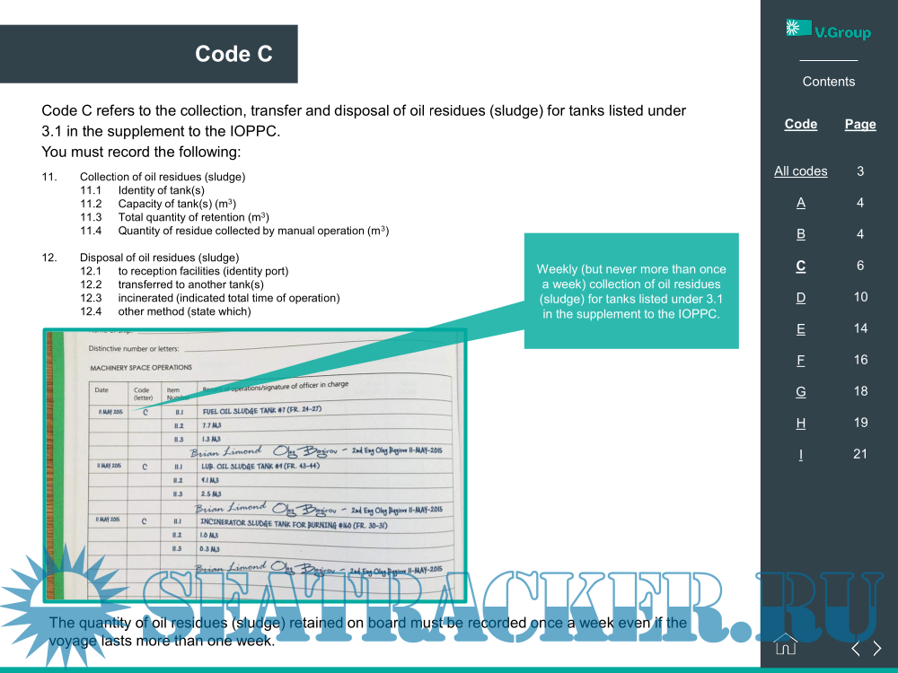Description: The Oil Record Book is an official document that provides evidence that a vessel complies with the instructions and operational requirements of MARPOL Annex I.