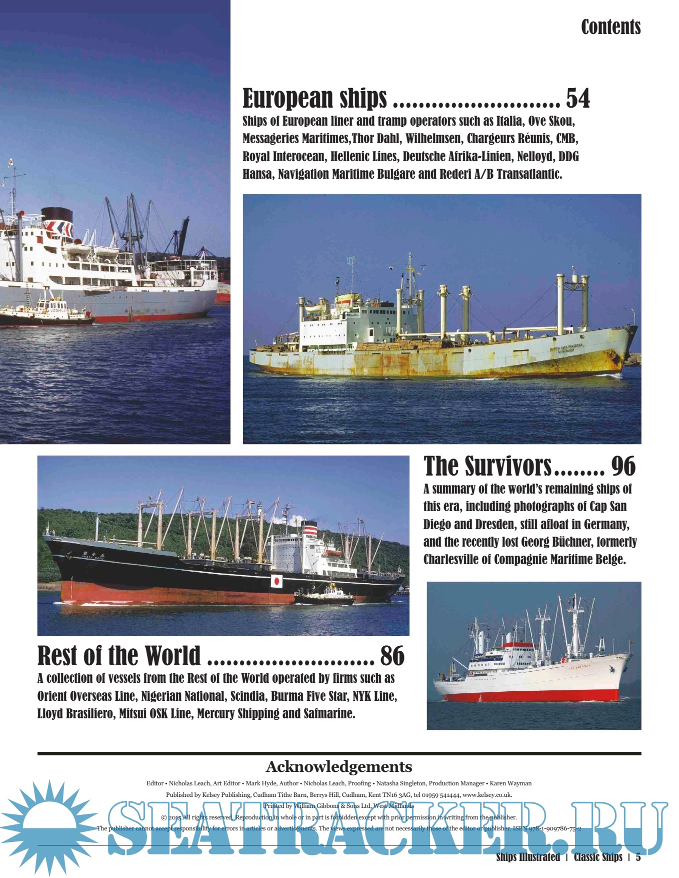 Description: This book is a compilation of photographs taken by South African photographer Trevor Jones over a period of two decades when the world's shipping industry was witnessing the replacement of the conventional general cargo carrier by container ships and the passenger liner by cruise ships. The book contains photos of British, European and American ships, those from the Rest of the World and those that survive to this day.