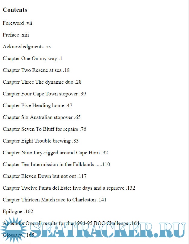 Year: 1997 Language: english Author: Allan Nebauer Genre: History Publisher: International Marine Edition: First ISBN: 13: 9780074703311 Format: PDF Quality: Scanned pages Pages count: 166 Description: Against All Odds is the true story of Alan Nebauer's remarkable experiences in the 1994-95 BOC Around the World Race for singlehanded sailors. Sailing as a Class II competitor aboard the 50-foot Newcastle Australia, Alan Nebauer had to endure incredible difficulties in a race that lasted almost eight months and covered 27,000 miles. The book recounts the author's rescue of a fellow English competitor, his experience of being dismasted and rounding Cape Horn with a jury rig, and of the loss of his rudder north of the Falkland Islands, sailing with a steering oar to Punta del Este. Beyond this, it is a testament to Alan's extraordinary courage and determination in the face of overwhelming odds, and to his outstanding seamanship, for which he deservedly won two awards. An exceedingly deadpan account of a challenge race, an entire circumnavigation of the globe, from a professional (and impoverished) Australian sailor. The BOC Challenge is the longest sailing race for an individual: 27,000 nautical miles, in four stages. In September 1994, Nebauer and 19 other competitors sailed out of Charleston Harbor, S.C., and took anywhere from 121 to 223 days (not counting layovers) before they saw the lights of Charleston again. Nebauer sets the tone of his narrative early: ``I was determined simply to do my best.'' He's a no-bluster type, never suggesting that he'd like to whip his opponents' collective butt or burn the course for a new record. He was, he says, simply happy to ``push on, trimming sails and keeping the boat at its peak.'' But this was not to be a cakewalk. His alternators died, forcing him to landfall; water ruined his computer, leaving him unable to receive weather and fleet updates, or news from home; screaming winds, high seas, and rogue waves dismasted him and tore off his rudder--both profoundly dangerous events. Others might have panicked or given up, but Nebauer stays almost too steady: He ``put his plans for the jury rigging to God'' and waxes stoically that ``we were determined to finish what we started.'' What enlivens the tale are Nebauer's evocative descriptions of the spectacular weather that rolls over him, and his comfortable use of sailing argot: beam winds and rhumb lines, third reef points, luff grooves, and flaking genoas. After 181 days at sea, after all the adversity and exhaustion, after so much sheer terror, Nebauer finished in the middle of the pack, won two medals for seamanship (one for saving the life of a fellow competitor), and found energy to note that he looked forward ``to the possibility of taking up the challenge again Additional info: PDF + EPUB