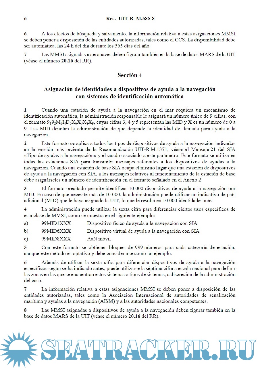 Assignment and Use of Identities in the Maritime Mobile Service (Recommendation ITU-R M.585-8)