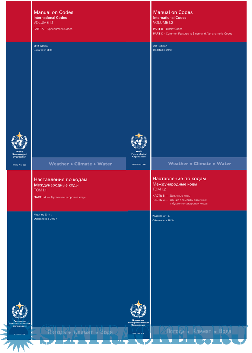Description: Volume I contains WMO international codes for meteorological data and other geophysical data relating to meteorology; it constitutes Annex II of the WMO Technical Regulations and, therefore, has the status of a Technical Regulation. It is issued in two volumes: Volume I.1, containing Part A, and Volume I.2, containing Part B and Part C.