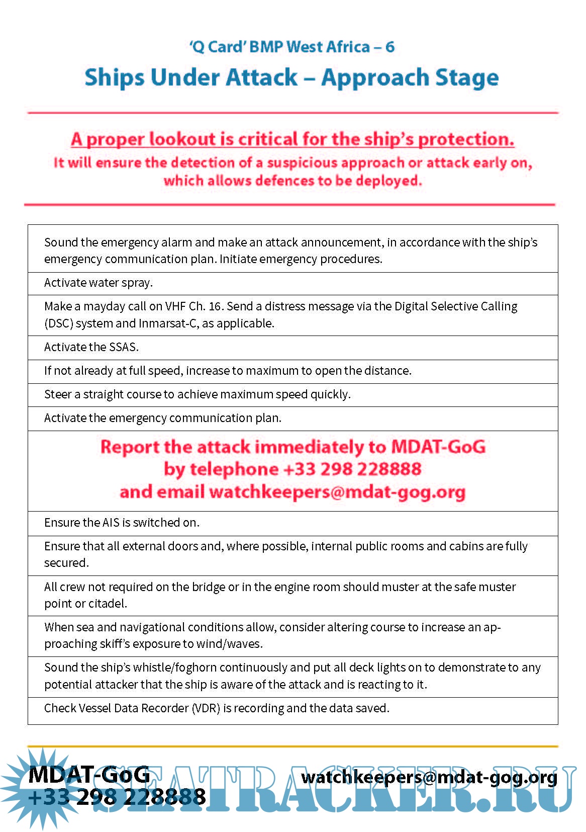 Bridge Cards are quick reference guides that aim to support mariners during times of tension caused by piracy attacks