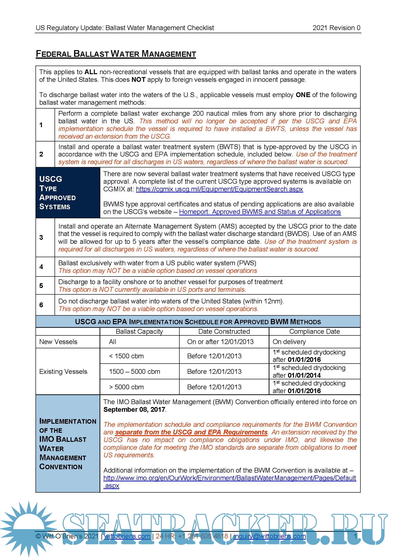 Master's Guide to Compliance in US Waters - Witt O'Brien's [2021, PDF]