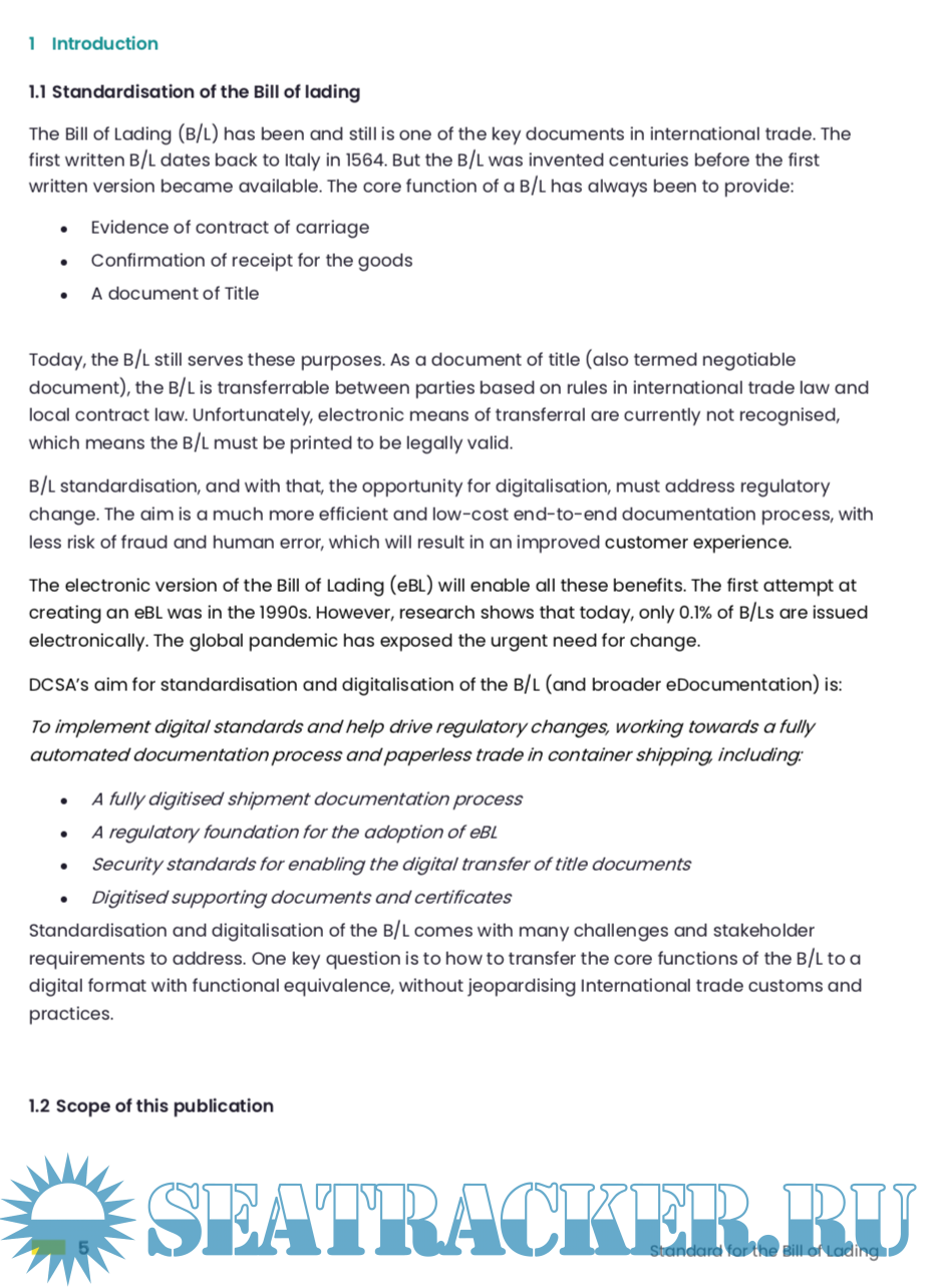 Standard for the Bill of Lading: A roadmap towards eDocumentation
