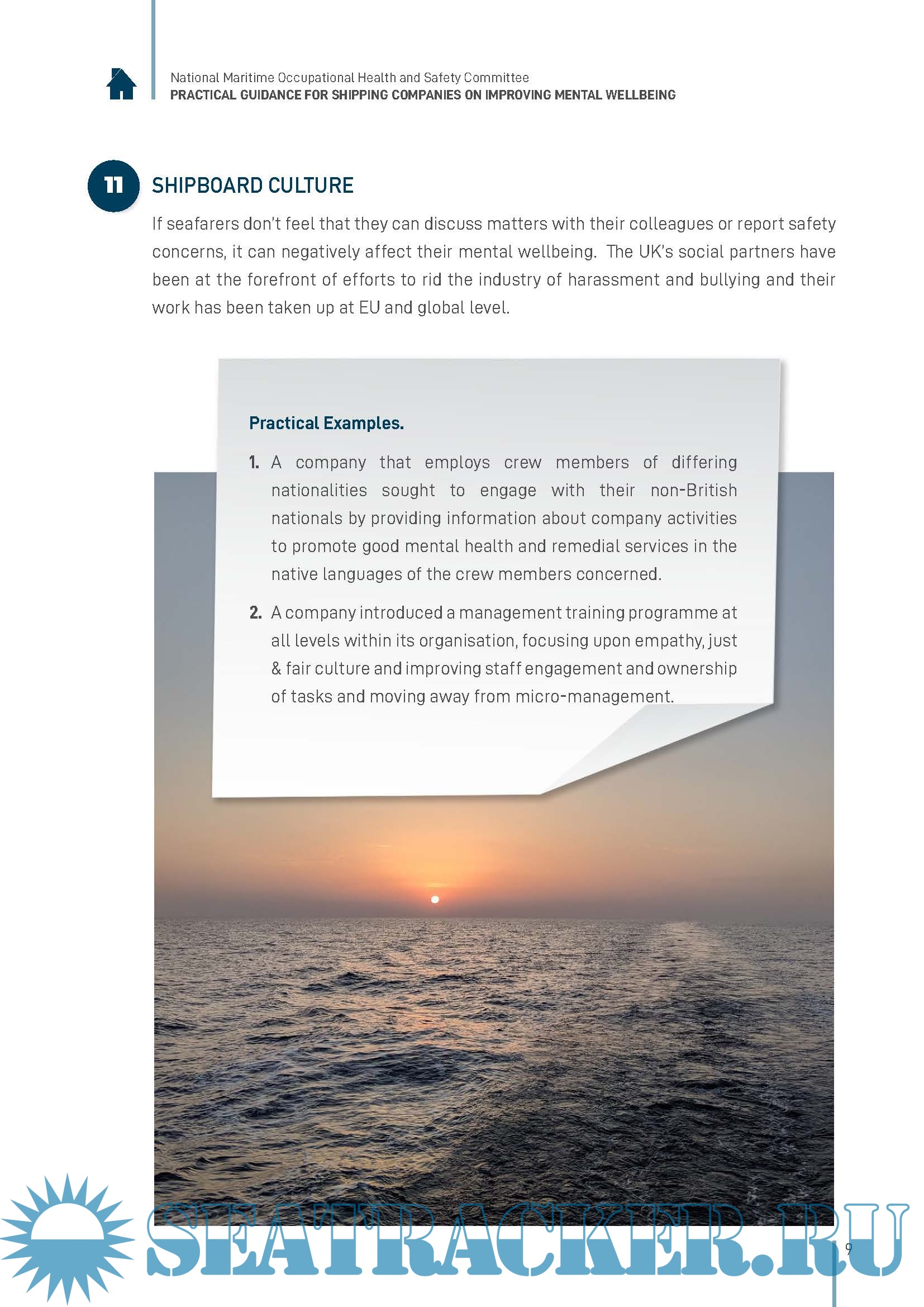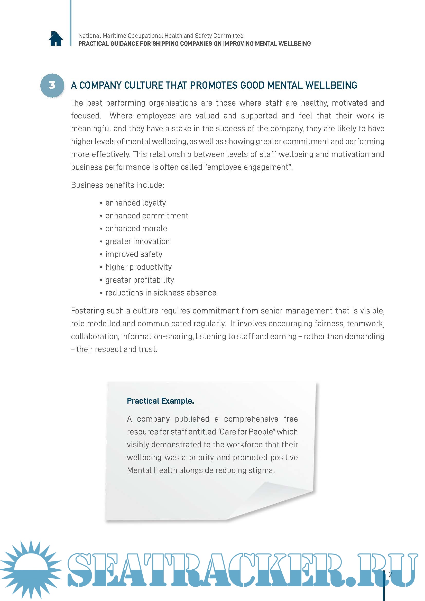 the mental wellbeing of their employees. It is focused principally on seafarers but some