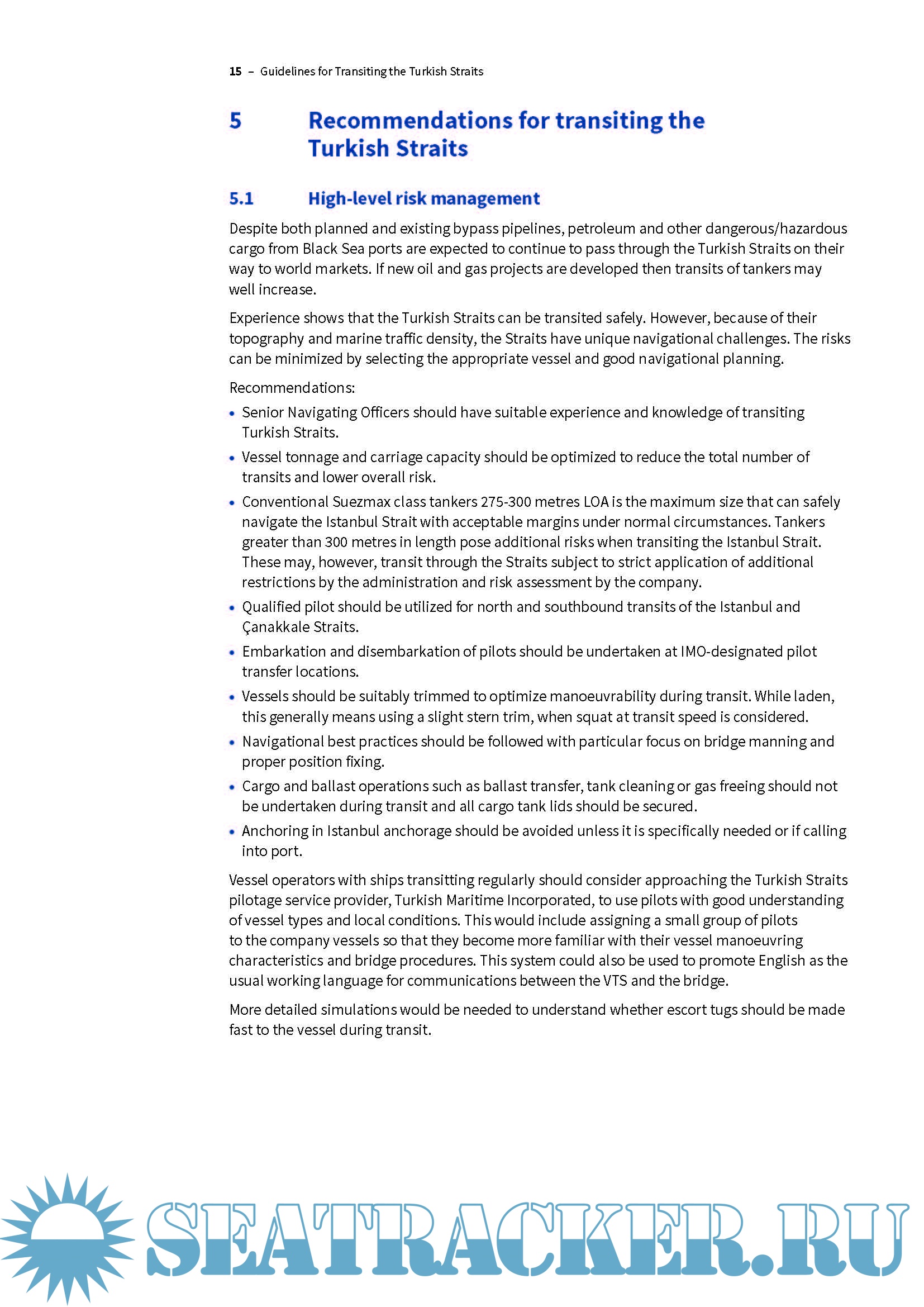 Description: The Turkish Straits present a unique navigational challenge. To help the development of company risk assessments for companies operating in this area, OCIMF has updated the Guidelines for Transiting the Turkish Straits (published in 2007) and provided additional guidance.