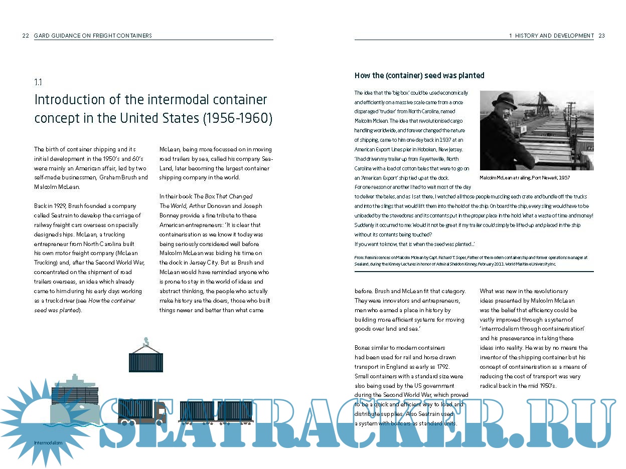 Year: 2016 Language: english Author: Jeroen de Haas Genre: Guide Publisher: GARD ISBN: 9788290344356 Format: PDF Quality: eBook Pages count: 336 Description: The book is of general interest to any person involved in the freight container trade as well as surveyors, lawyers, insurers, professional/technical organisations and students. It is primarily intended for seafarers handling containers as part of their day to day duties. The aim of the Guidance is to give them context and practical assistance to help them both better understand and manage the risks involved in container operations onboard and ashore. This new Gard book aims to review and give a unique understanding of the handling and risks involved in shipping containerised cargo. About 90 per cent of international trade is moved by ocean-going ships and the majority of consumer and semi-finished goods are shipped in containers at sea. What better way to mark 60 years of container use than with this comprehensive guide. It is hoped that this new Guidance will become the go-to reference book for information and knowledge about the freight container and its proper handling, stowage and securing on board.