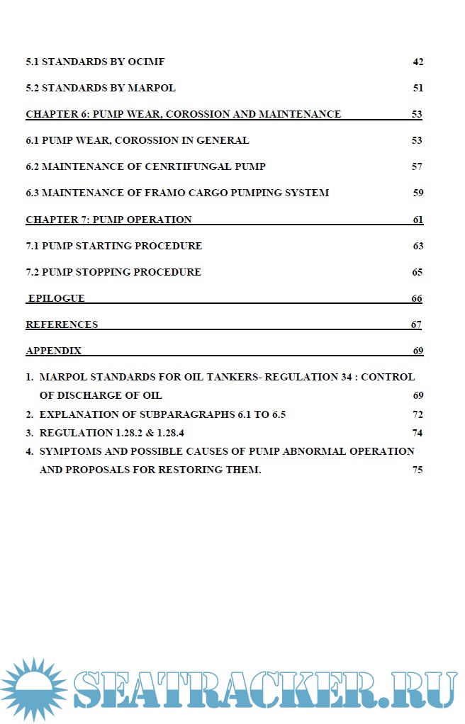 Year: 2018 Language: english Author: ΣΑΡΑΦΟΠΟΥΛΟΥ ΑΓΓΕΛΙΚΗ Genre: Курс лекций Publisher: ΑΚΑΔΗΜΙΑ ΕΜΠΟΡΙΚΟΥ ΝΑΥΤΙΚΟΥ ΜΑΚΕΔΟΝΙΑΣ Format: PDF Quality: eBook Number of pages: 80 Description: This project attempts to identify the types of pumps established on ships, i.e. cargo-oil- pumps (C.O.P.) and related systems (such as: inert gas pumps, tank cleaning pumps e.t.c.) that are used mostly in tanker vessels and their functions. Additionally, the process of the operation of pumps is presented, the sealing, bearings and drive transmission that they are equipped with. A detailed reference is made to other systems that are located in M/T vessels, such as pumps in ship propulsion and in ship electric power production systems (Fire pumps, Bilge pumps, and hot water circulation pumps e.t.c.). Moreover, this dissertation offers a description of the A.U.S. system, Framo Hydraulic Cargo Pumping System and standards by OCIMF (Oil Companies International Marine Forum) and ISGOTT (International Oil Tanker and Terminal Safety Guide) of how pumproom, cargo lines and other lines on deck and manifolds should be constructed and arranged. Also the matter of responsibility at cargo handling in pumps is discussed, as well as the pump wear and maintenance. In conclusion there is a short reference to how cargo handling operations are conducted with cargo pumps and other systems (loading and discharging) in tanker vessels.