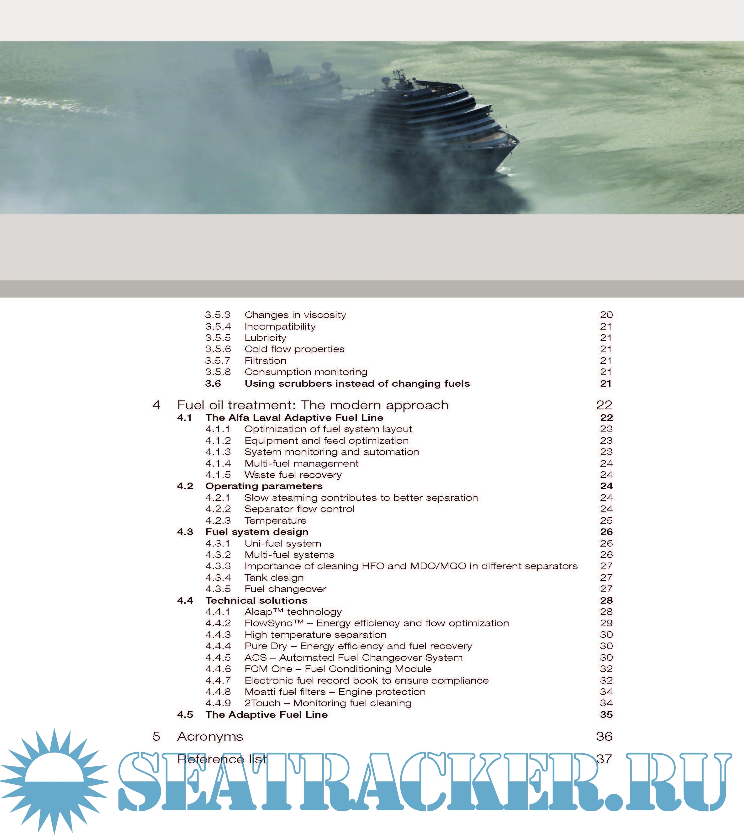 Year: 2018 Language: english Author: Alfa Laval Genre: Technical book Format: PDF Quality: eBook Pages count: 38 Description: Technical reference booklet. A technical reference booklet on catalytic fines, sulphur emission legislation, oil compatibility issues and how to handle these challenges with modern fuel treatment systems. This BlueBook provides an overview of the Adaptive Fuel Line concept and the rationale behind its development. The BlueBook serves as an introduction to fuel handling in general, a technical reference for those interested in the function and relevance of specific components, and a guide to how the entire fuel chain can be designed to improve fuel handling efficiency and reduce operating costs. This book describes the background and implications of the change underway and explains how the Adaptive Fuel Line has been designed to meet the fuel handling and treatment needs of ships in the low-sulphur era.
