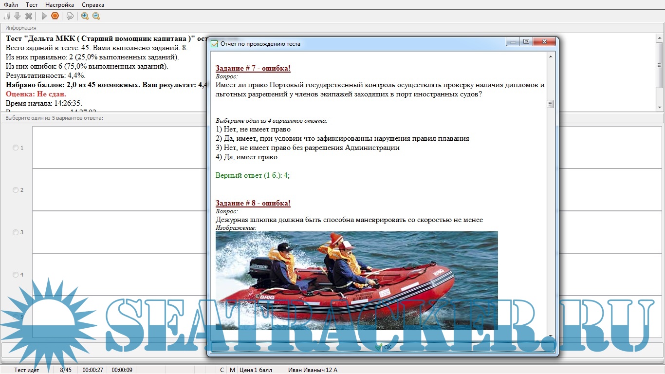 Открыт тест: ”Дельта МКК ( Старший помощник капитана )"