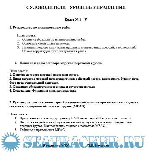 Ответы на вопросы для устного экзамена на Старпома для ММК в Питере