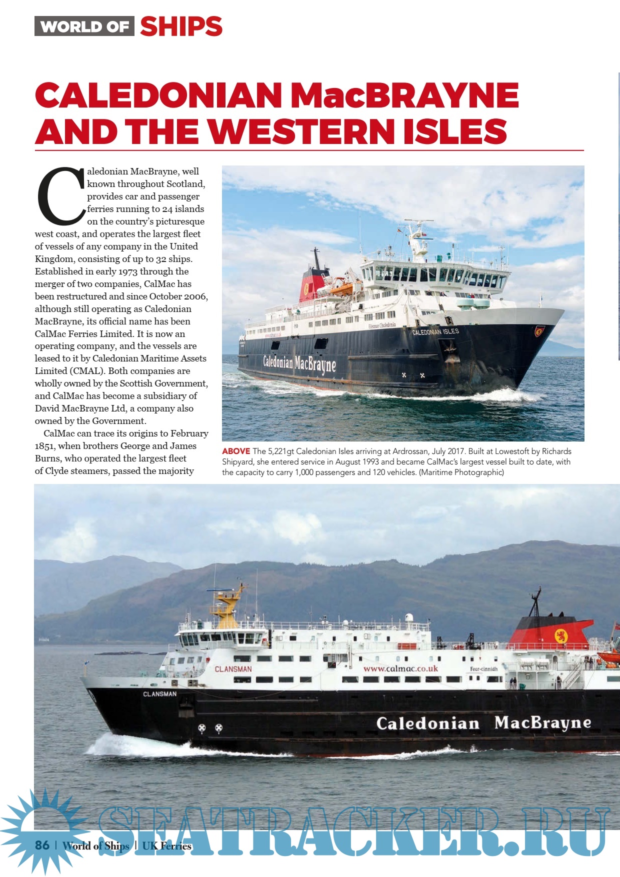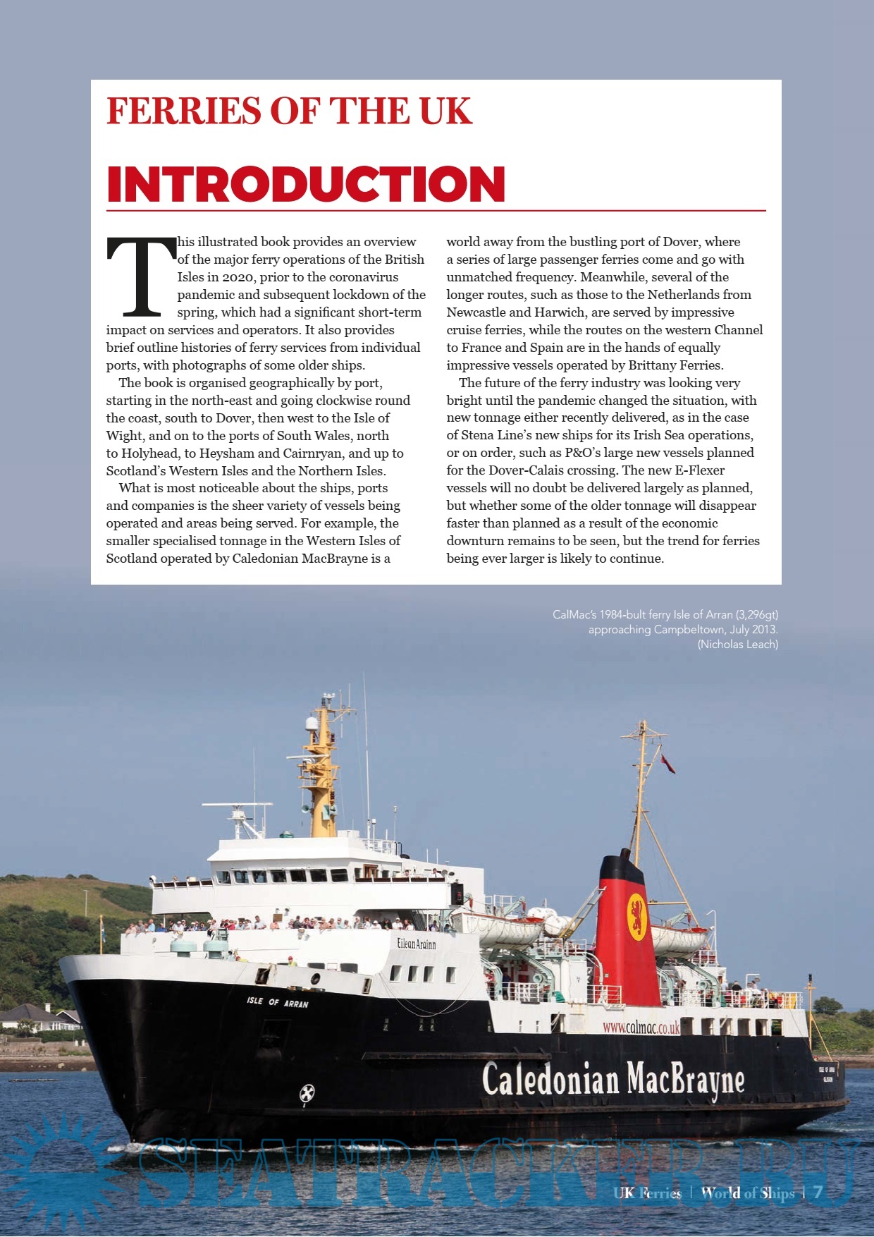 What is most noticeable about the ships, ports and companies is the sheer variety of vessels being operated and areas being served. For example, the smaller specialised tonnage in the Western Isles of Scotland operated by Caledonian MacBrayne is a world away from the bustling port of Dover, where a series of large passenger ferries come and go with unmatched frequency. Meanwhile, several of the longer routes, such as those to the Netherlands from Newcastle and Harwich, are served by impressive cruise ferries, while the routes on the western Channel to France and Spain are in the hands of equally impressive vessels operated by Brittany Ferries.