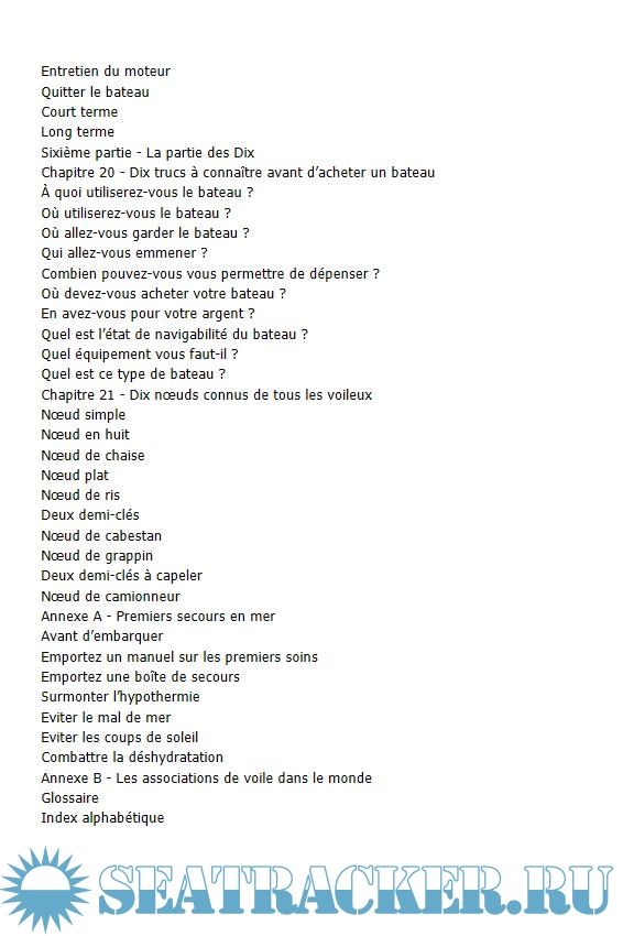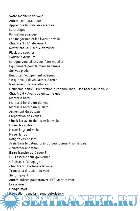 • L'équipement et les vêtements à porter à bord, l'entretien du bateau.