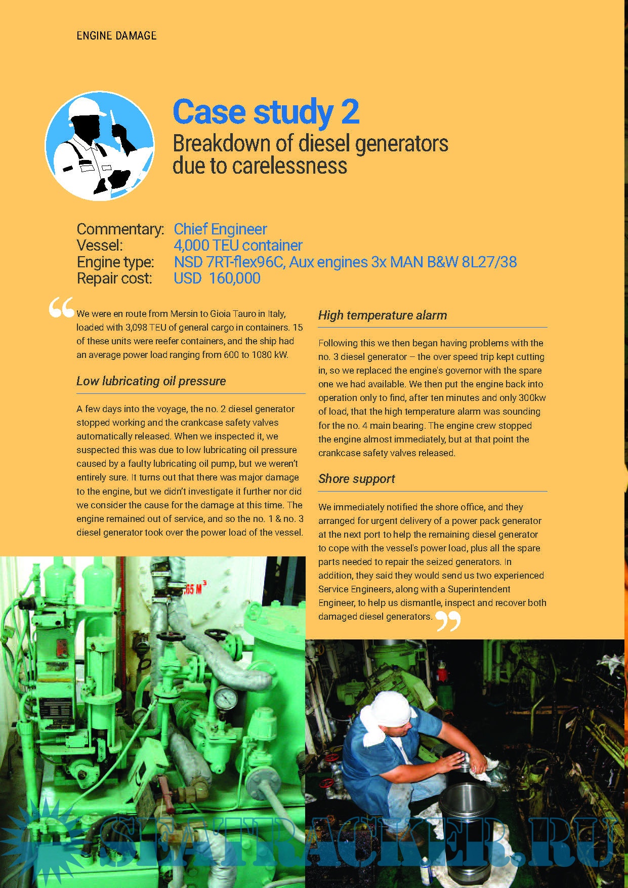 Year: 2021 Language: english Author: the Swedish Club Format: PDF Quality: eBook Pages count: 12 Description: Main engine damage is an expensive category of claims that occurs far too frequently. Statistically, a vessel will suffer between one and two incidences of main engine damage during its lifetime. The case studies in this publication have been chosen to showcase some of the most common causes of engine damage. The cases are taken from real-life situations where an insurance claim has been made.
