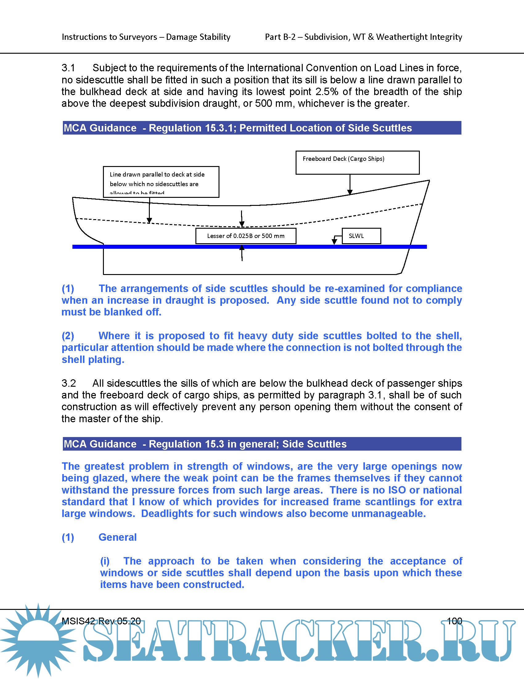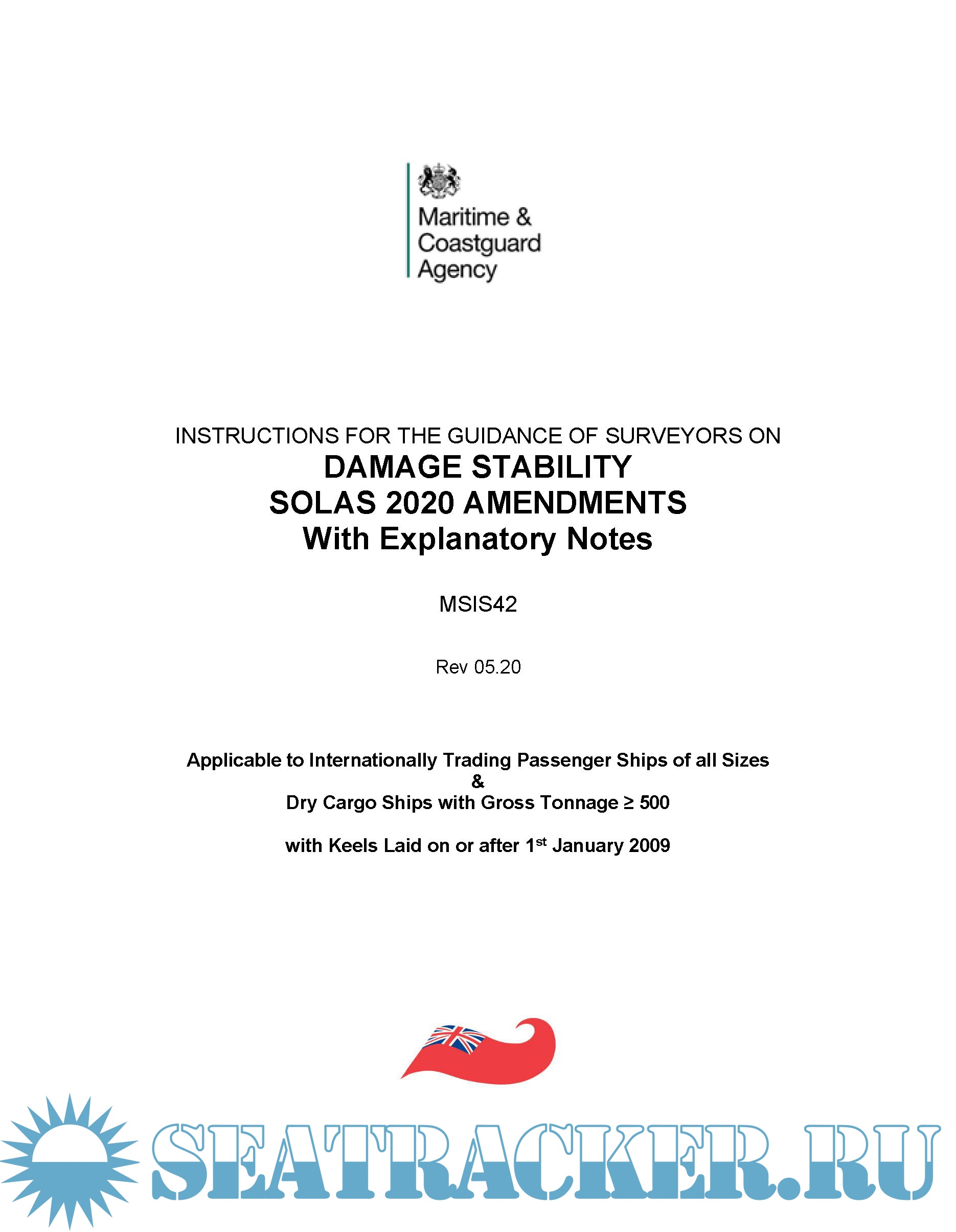Year: 2020 Language: english Author: MCA Format: PDF Quality: eBook Pages count: 144 Description: INTRODUCTION AND HISTORICAL BACKGROUND INSTRUCTIONS FOR THE GUIDANCE OF SURVEYORS ON DAMAGE STABILITY SOLAS 2020 AMENDMENTS With Explanatory Notes MSIS42 Rev 05.2020 The basis text in this document is extracted from the SOLAS Consolidated Edition 2014 which incorporates all SOLAS amendments in effect from I July 2014 most notably, from the damage stability aspect, the December 2006 Annex 2 amendments, adopted by IMO resolution MSC.216(82), which entered into force for passenger ships and dry cargo ships with keels laid on or after 1 January 2009. Commonly known as the SOLAS 2009 amendments, MSC.216(82) substantially revised SOLAS90 Part 1 Chapter II-1 Parts A (General), B (Subdivision and Stability) and B-1 (Subdivision and Damage Stability of Cargo Ships). The amendments resulted in Chapter II-1 being re-organised and revised. Some MCA Guidance Notes are included, mostly extracted from the current Instructions to Surveyors for Passenger Ships. Work is still in progress on these at the time of writing (May 2020), including guidance of our interpretation of regulations in SOLAS which include phrases such as “to the satisfaction of the Administration”. .