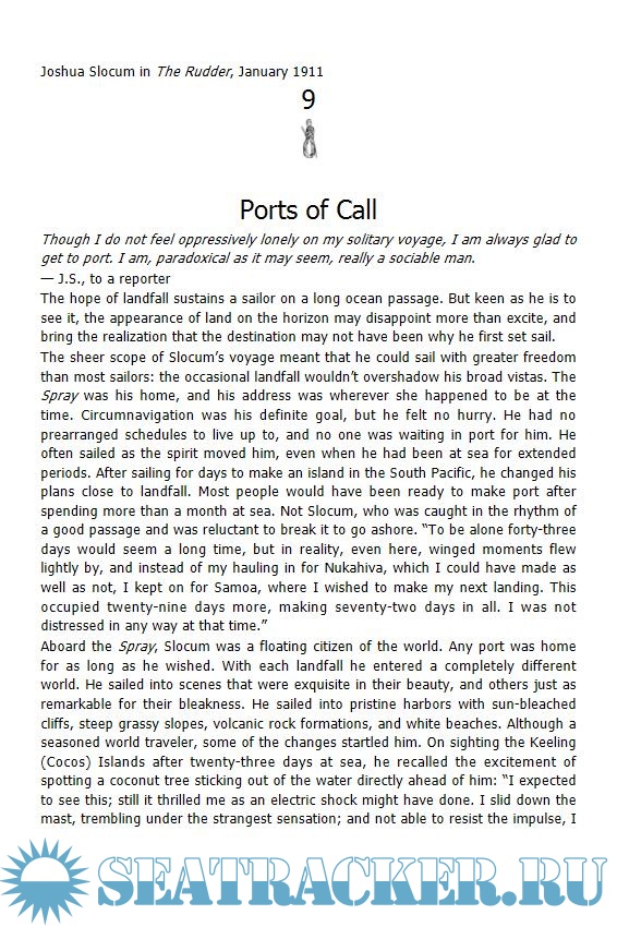 Year: 1998 Language: english Author: Spencer А. Genre: History Publisher: Doubleday Canada Edition: 1st ISBN: 0385257201 Format: EPUB Quality: eBook Pages count: 210 Description: The true story of Canada's greatest sailor, the first to sail around the world single-handedly. When Joshua Slocum sailed into port in Massachusetts on June 27, 1898, he was the first man ever to have completed a voyage around the world without technology, money or companion. It took him three years to cover the 46,000 miles, and along the way he was chased by pirates, buffeted by storms, and narrowly escaped death by sharks. When a goat ate his charts, he managed to navigate through the Caribbean by memory and intuition. This is the true-life adventure story of an extraordinary man, who ran away to sea at sixteen and never looked back. Born on a farm in Nova Scotia, he apprenticed on voyages to China, Hong Kong and Indonesia; met and married his wife in Sydney, Australia, and raised his family aboard sailing vessels in ports around the world. He survived mutinies, lost cargoes, terrible storms, and treacheries at sea before resolving on his voyage around the world in a dilapidated oyster sloop he named The Spray. After settling down and writing his memoirs, he set sail on November 14, 1909, and was never seen again.