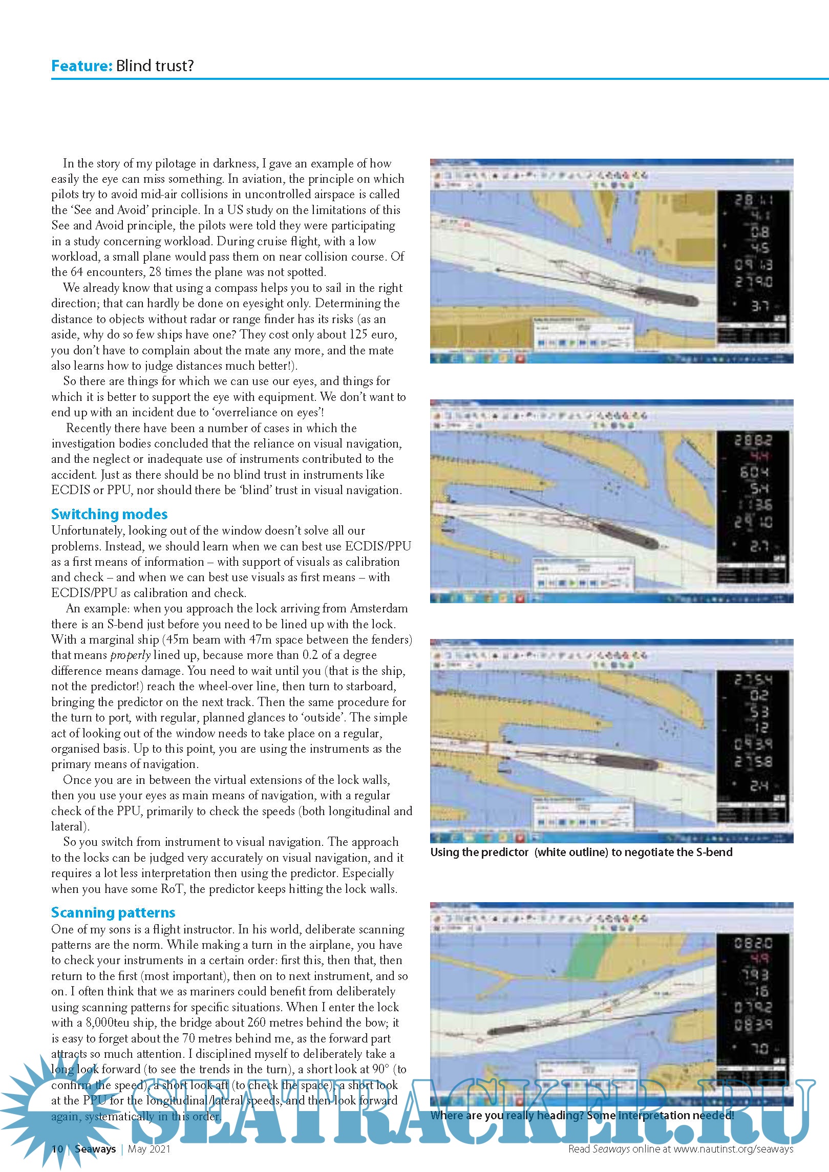 Year: 2021 Language: english Author: The Nautical Institute Genre: Periodical (magazine) Format: PDF Quality: eBook Pages count: 40 Description: Edition May, 2021 Seaways Recognised as one of the leading maritime journals, Seaways is sent out to all members monthly. It is the international journal of The Nautical Institute and has the most vibrant professional correspondence section to be found anywhere in the industry. The vitality of the journal is shared by those who contribute to it and those who read it. It is designed to advance high professional standards and promote fellowship within the profession. This is achieved through contributions and debate directed at a practical level, designed to improve the safe and efficient operation of ships and other maritime ventures.Seaways is the vehicle which links professionals worldwide and enables members to be kept up-to-date with changes in legislation, management and technical procedures, new ideas and books, and announcements. It is also a steadying influence on impractical proposals.