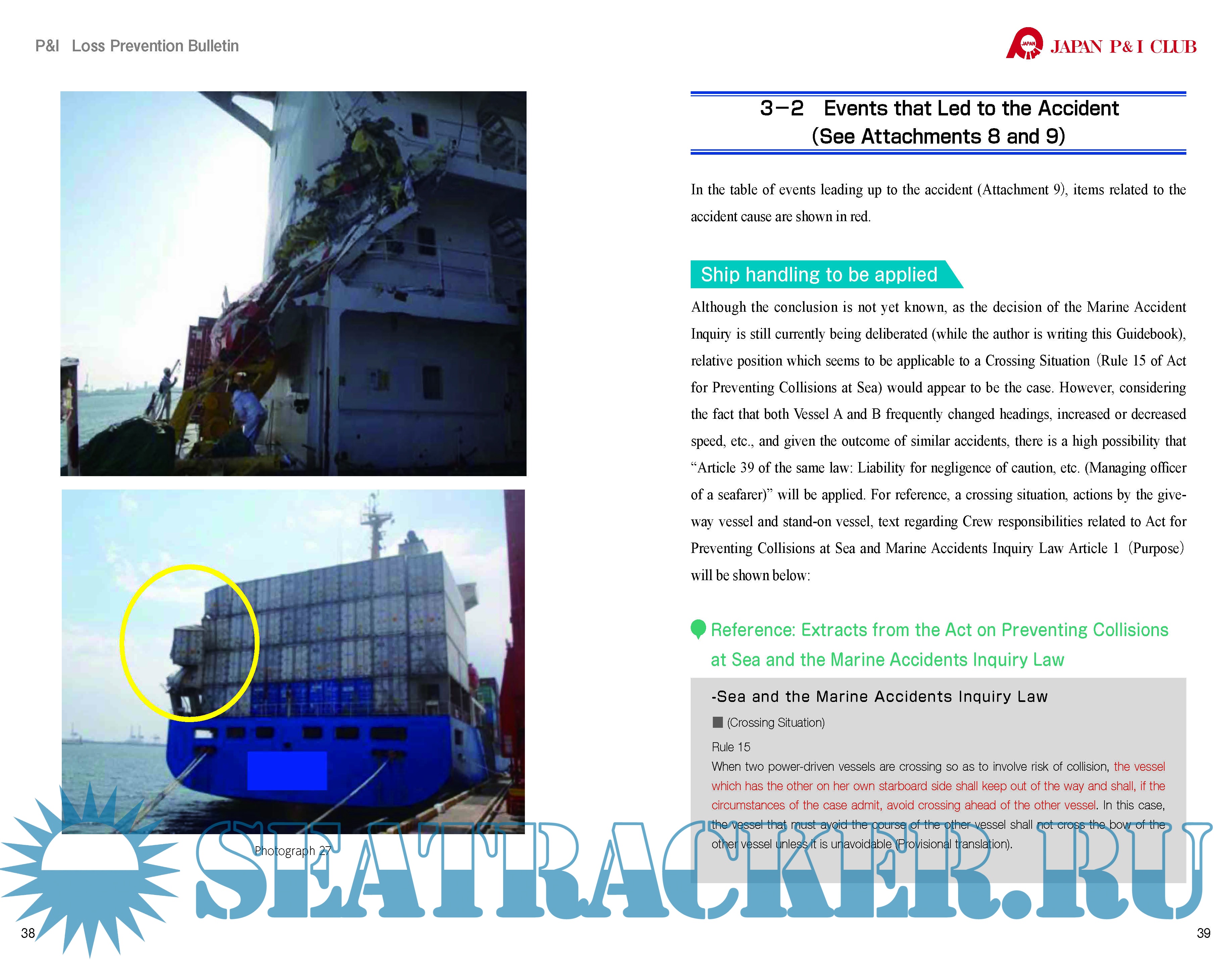 Year: 2021 Language: english Author: Japan P&I Club Format: PDF Quality: eBook Pages count: 132 Description: In this guide "Analysis of Accident Cases" we have included all of the key elements taken from seminars that were held introduced the definition of “safety”, mechanisms behind maritime accidents, how to prevent maritime accidents and so on.