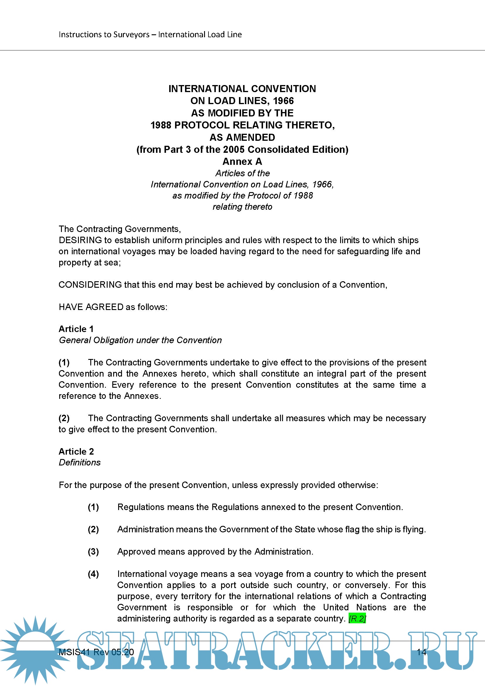 Description: INSTRUCTIONS FOR THE GUIDANCE OF SURVEYORS ON INTERNATIONAL LOAD LINE Rev 05.2020