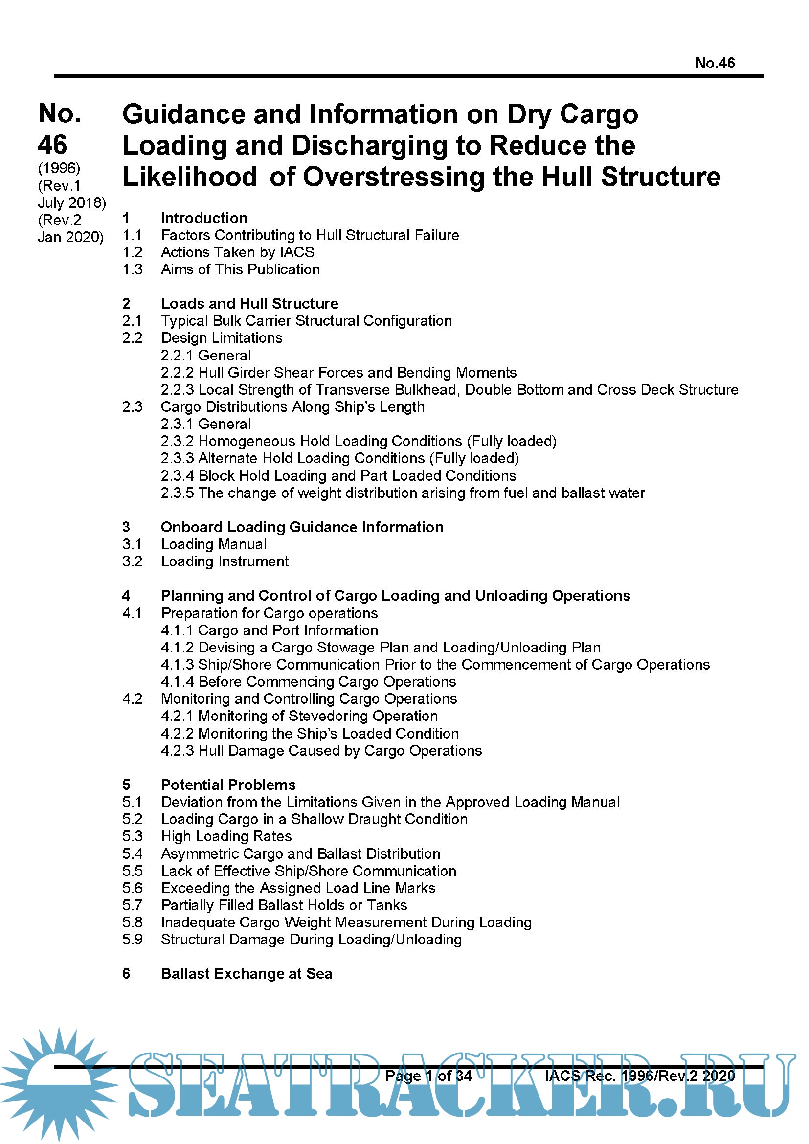 Year: 2020 Language: english Author: IACS Genre: Guide Format: PDF Quality: eBook Pages count: 38 Description: This publication is intended to provide the shipping community with guidance and information on the loading and discharging of bulk carriers to remain within the limitations as specified by the Classification Society to reduce the likelihood of over-stressing the ship's structure. The loads that affect the ship's structure are generally discussed with special reference to the structural strength limitations imposed by the ship's Classification Society. The process of planning and controlling cargo operations is addressed with special reference to the derivation of the loading and unloading plans and the requirements for ship/shore communication. A review of the potential problems that could be encountered during cargo operations is presented. Guidance is given on the measures that should be taken to monitor and control cargo and ballasting operations in order to reduce the possibility of over-stressing the ship's structure. Revision 2 : January, 2020