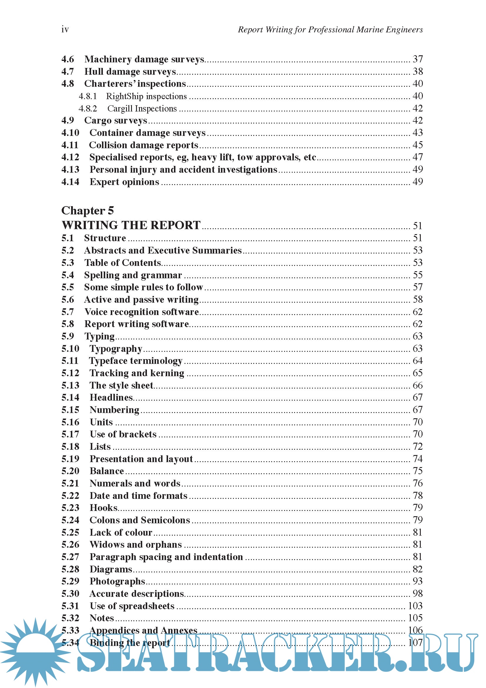 Description: This is a practical guide for marine engineers on completion of the wide range of marine reports. It discusses conducting a survey and gathering information, conforming with legal requirements, writing a complete and effective report, text formatting and presentation of diagrams and photographs.