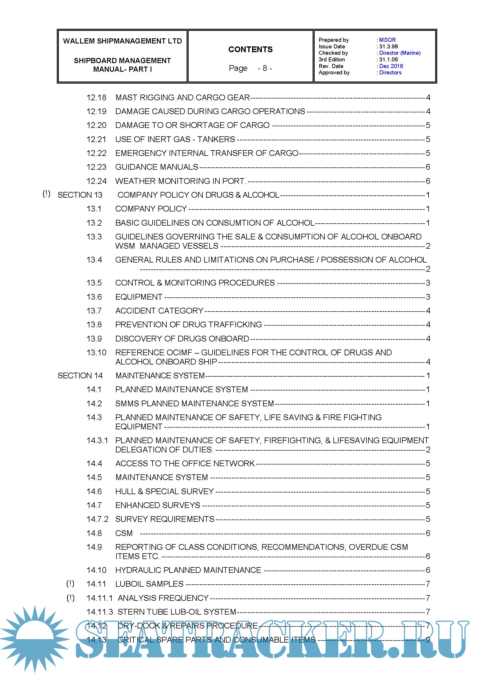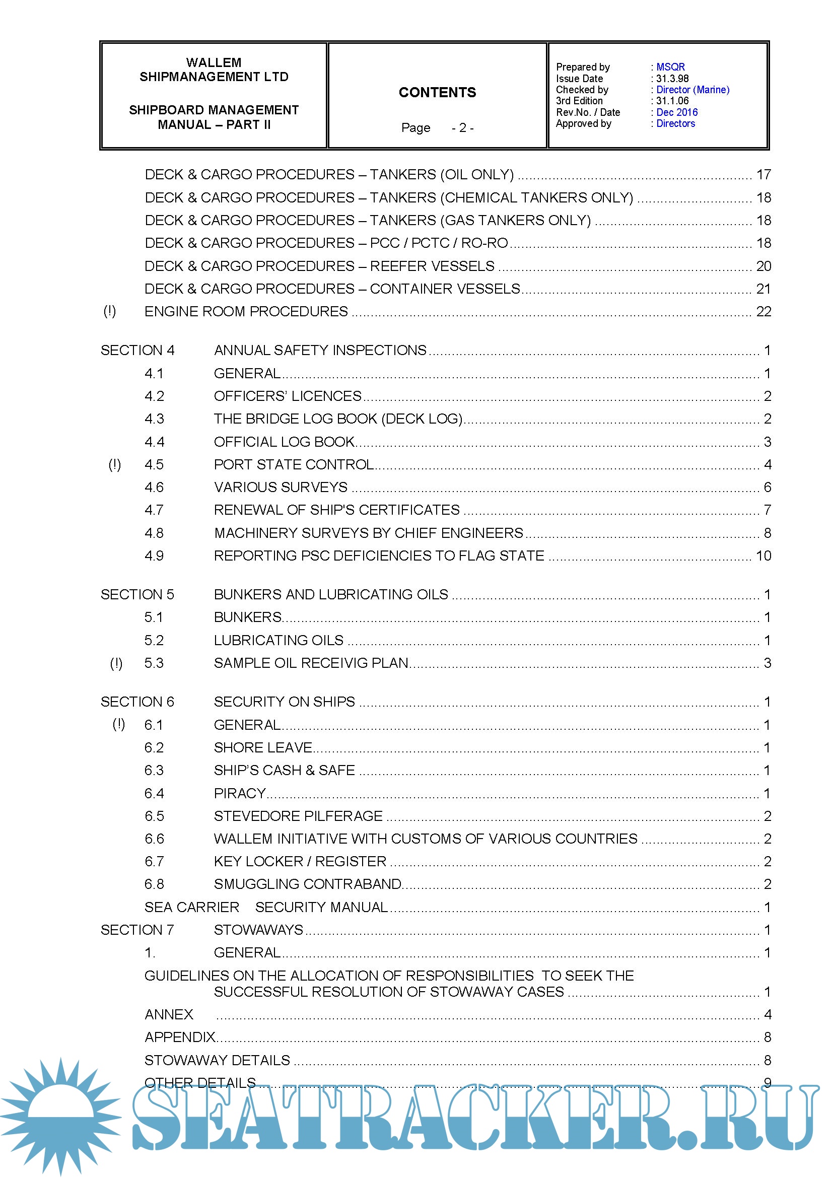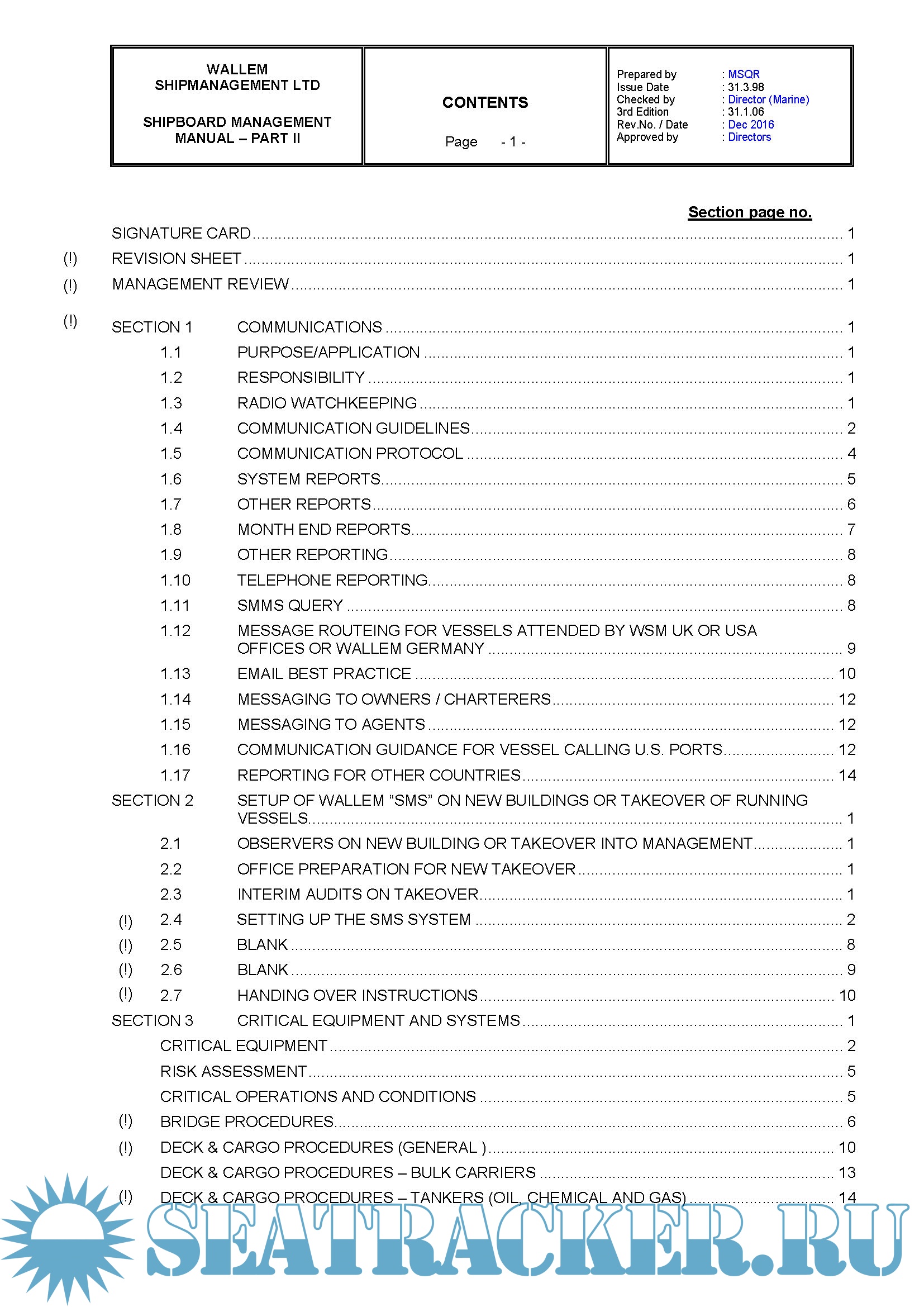 Description: Wallem ShipManagement Ltd Shipboard Management Manual Parts 1 & 2