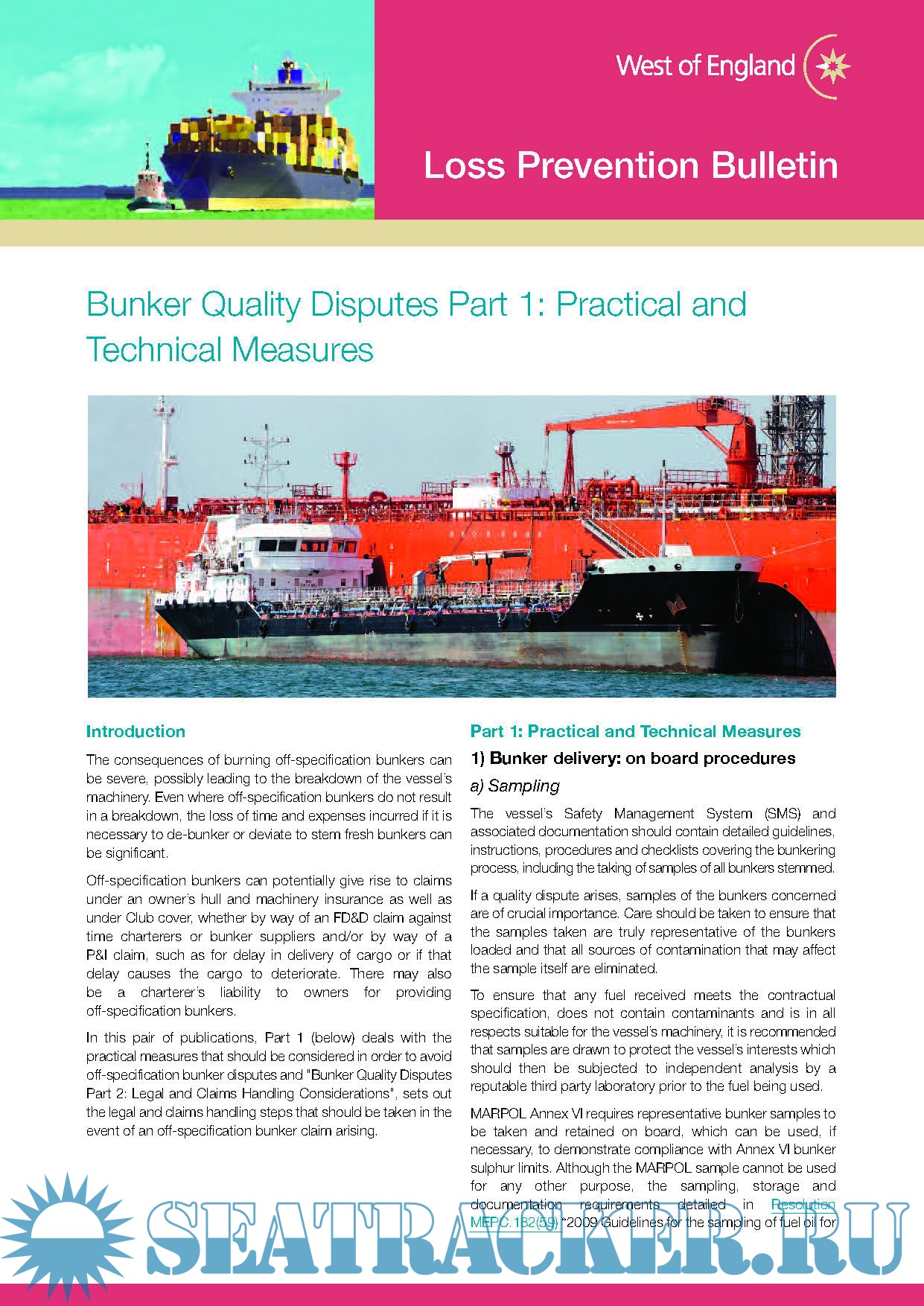 In a pair of new publications, a Loss Prevention Bulletin "Bunker Quality Disputes Part 1: Practical and Technical Measures" deals with the actions and steps that should be considered in order to avoid off-specification bunker disputes, and a Claims Guide “Bunker Quality Disputes Part 2: Legal and Claims Handling Considerations” sets out the legal and claims handling steps that should be taken in the event of an off-specification bunker claim arising.