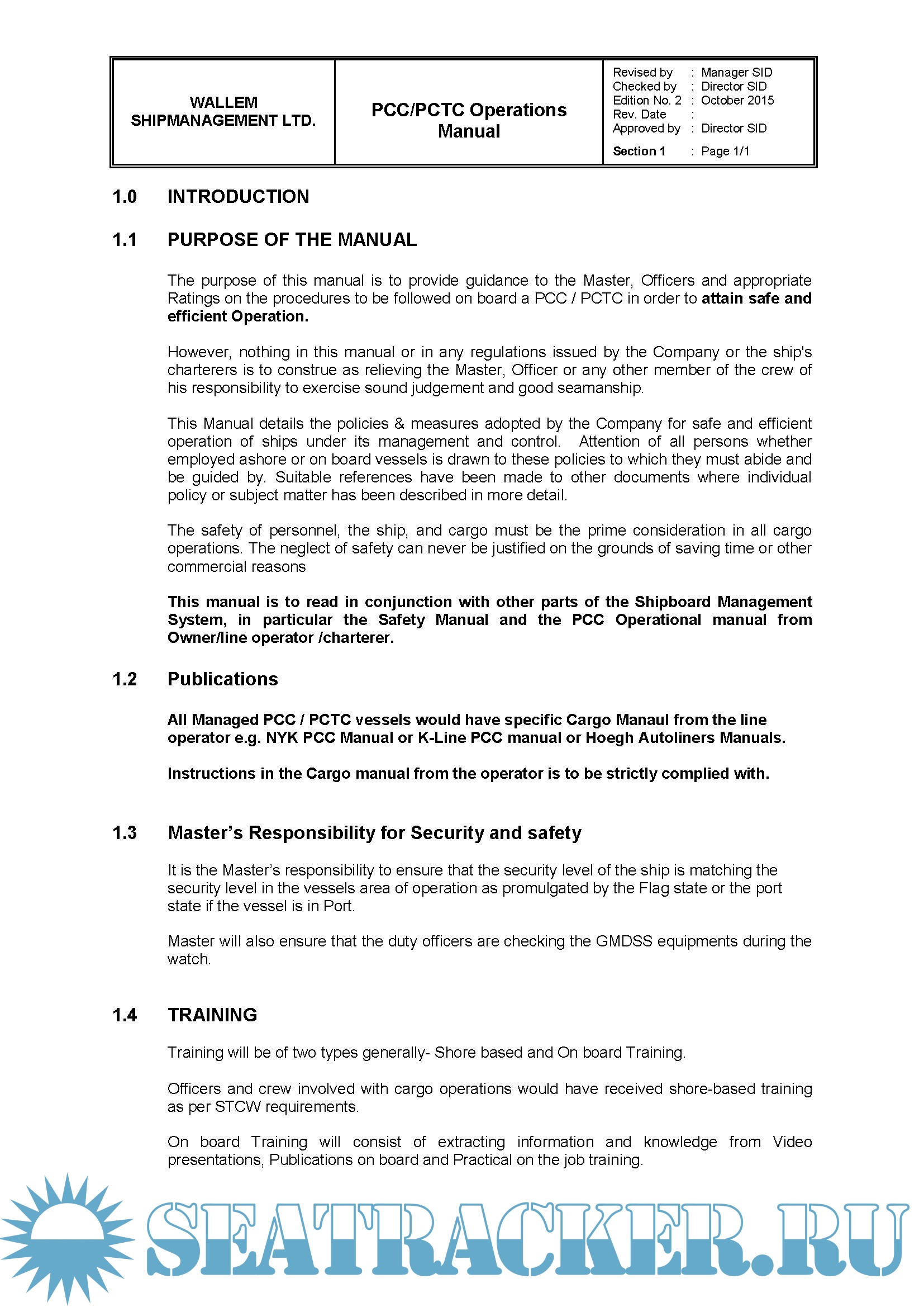 Description: The purpose of this manual is to provide guidance to the Master, Officers and approriate ratings on the procedures to be followed on board a vessel in order to attain safe and efficient operations. This Manuals details the policies and measures adopted by the Company for safe and efficient operation under its management and control.